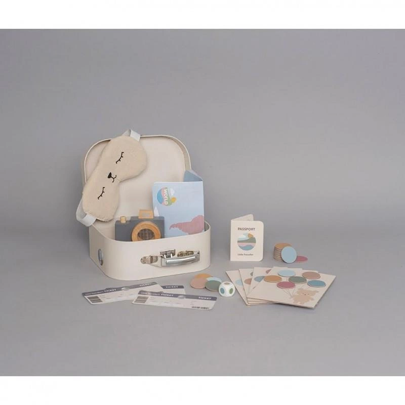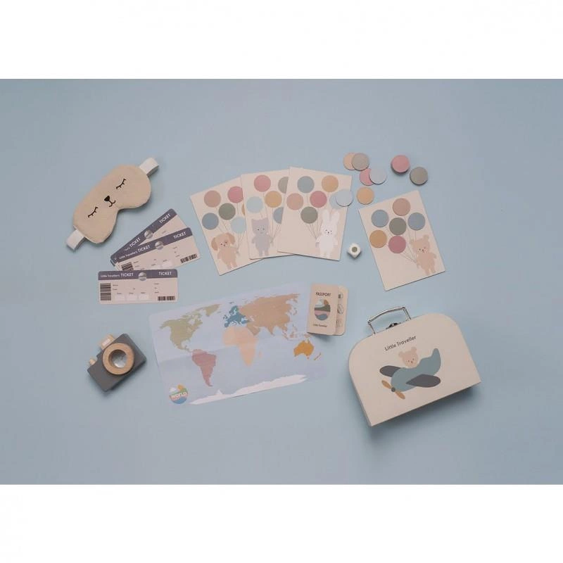 Walizka małego podróżnika, to niezbędne akcesoria, które umilą nam podróże te małe, i te duże. W walizce znajduje się wszystko to, co niezbędne by zaplanować wakacje, a także uprzyjemnić czas spędzony w podróży. W zestawie małego podróżnika i odkrywcy znajdziemy: walizkę, paszport, bilety, aparat z kalejdoskopem, by móc uchwycić niesamowite widoki, maska na oczy, gdy przyjdzie czas na odpoczynek, ułatwi zasypianie w podróży, mapę dzięki której będziesz w stanie śledzić swoją podróż, oraz grę lotto -balony, gdy pojawi się nuda.