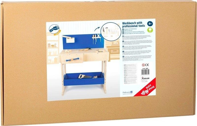 Drewniany warsztat, zapakowany w solidny karton, dzięki czemu, świetnie nadaje się jako prezent dla 8-latka. Wszystkie narzędzia zostały dostosowane dla osób prawo i lewo ręcznych.