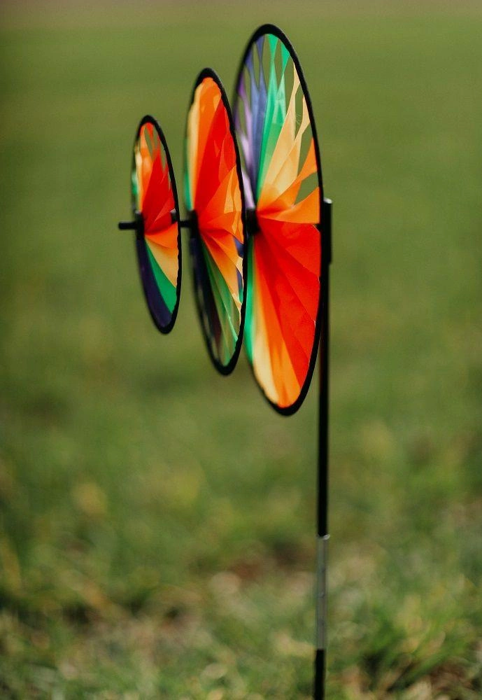 Montaż wiatraka jest bardzo łatwy. Wystarczy założyć obrotowe elementy na stelaż, po kolei i za każdym przyczepić zabezpieczającą końcówkę, która zapobiegnie spadaniu oraz nasuwaniu się poszczególnych obręczy na siebie. Szkielet wiatraka, w odróżnieniu do tańszych odpowiedników, został wykonany z włókna szklanego, co gwarantuje jego większą wytrzymałość i elastyczność.