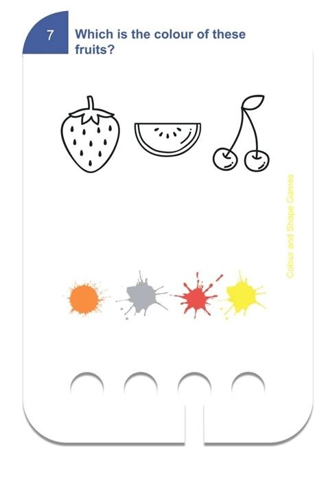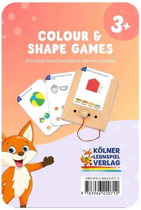 Zestaw „Kolory i Kształty” zawiera 24 kolorowe karty z zadaniami, które rozwijają spostrzegawczość, logiczne myślenie i umiejętność klasyfikowania. Dzieci uczą się rozpoznawać kolory, dopasowywać kształty, tworzyć sekwencje, odnajdywać brakujące elementy i rozwiązywać proste zagadki.