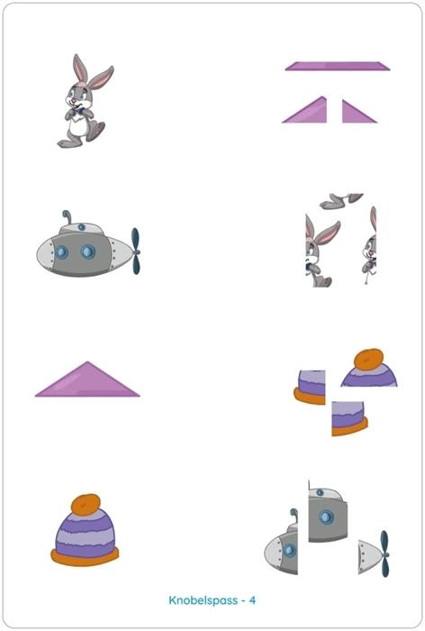 - Połącz obrazki po lewej stronie karty z pasującymi ilustracjami po prawej, rozciągając gumki na kołkach.
