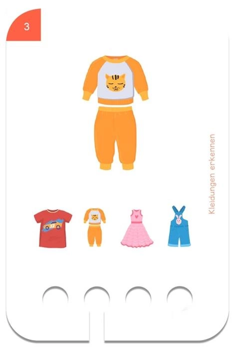 Zestaw „Rozpoznawanie Ubrań” to 24 dwustronne karty z 48 starannie zaprojektowanymi zadaniami, które rozwijają spostrzegawczość, koncentrację i logiczne myślenie – poprzez zabawę w dopasowywanie elementów garderoby.