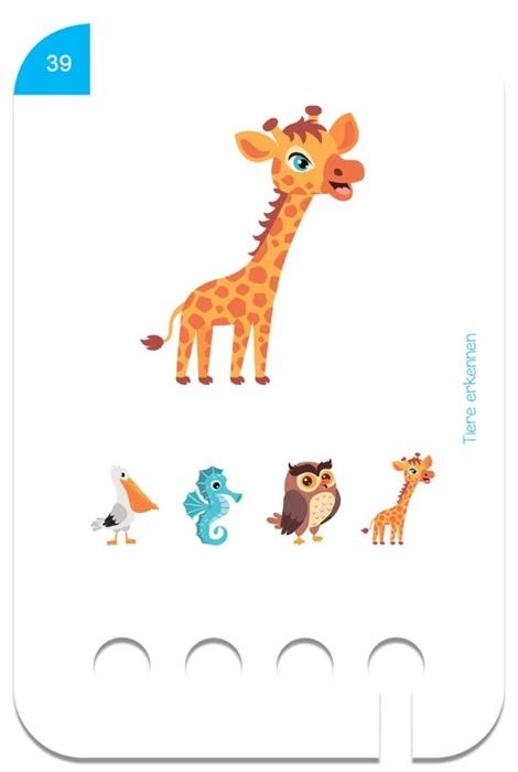 Zestaw zawiera 24 dwustronne karty z 48 starannie zaprojektowanymi zadaniami, które uczą rozpoznawania i kojarzenia zwierząt. Ćwiczenia wspierają rozwój koncentracji, spostrzegawczości i logicznego myślenia.