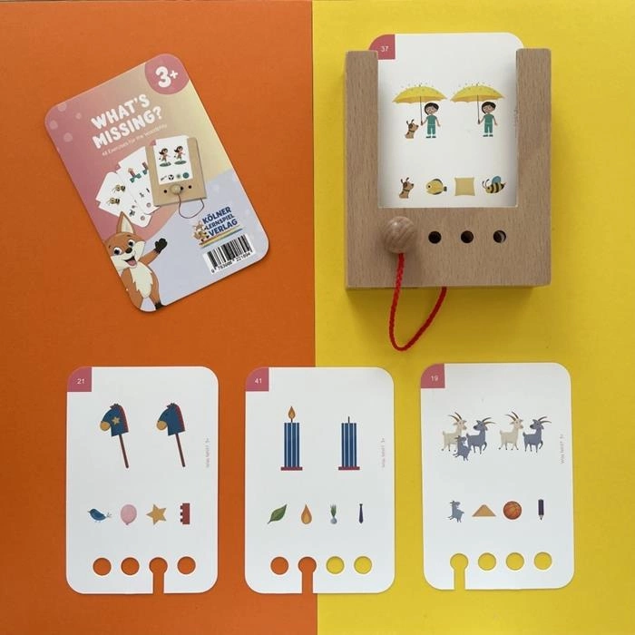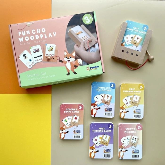 Karty rozwijają pamięć, koncentrację, logiczne myślenie i spostrzegawczość. Dzięki pracy z drewnianym patyczkiem dziecko ćwiczy także motorykę małą. Karty są dwustronne, z treściami w języku niemieckim i angielskim – co wspiera osłuchiwanie się z językami już od najmłodszych lat.