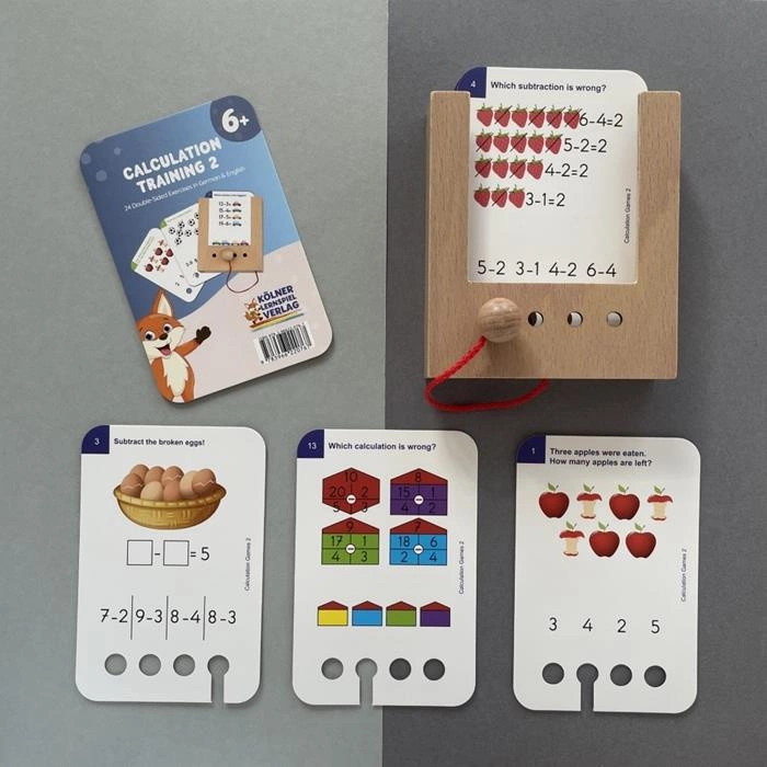 Karty wspierają rozwój pamięci, logicznego myślenia, koncentracji oraz umiejętności matematycznych. Dzięki pracy z drewnianym patyczkiem dzieci ćwiczą także motorykę małą. Karty są dwustronnie zadrukowane w języku niemieckim i angielskim, co sprzyja nauce języków obcych. Zabawa jest intuicyjna i nie wymaga umiejętności czytania.