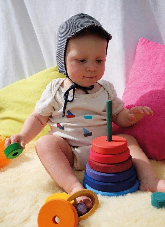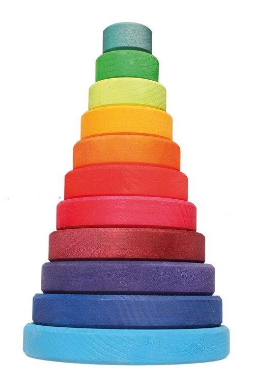 Stożkowa wieża do nakładania to klasyka wśród zabawek dla najmłodszych. Jakąś jej wersją w swoim dzieciństwie bawił się chyba każdy. Duża Wieża Grimm's to wyjątkowa odsłona tej popularnej zabawki.