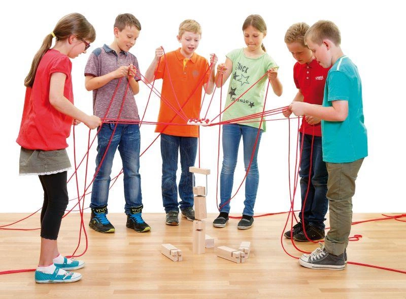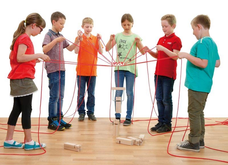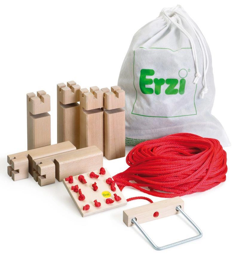 Wieża Froebla to stworzona głównie z drewna gra zespołowa, w którą zagra nawet 12 graczy! Żeby osiągnąć sukces z pewnością niezbędnymi okażą się: cierpliwość, poczucie ducha zespołowego, zdolność do koncentracji, umiejętność współpracy i komunikacji. Wygracie jeśli ułożycie wieżę z 6 drewnianych klocków. Tu nie miejsca na słabe ogniwo, w czasie rozgrywki każdy z graczy trzyma w ręku co najmniej jeden sznurek i próbuje wraz z innymi graczami skoordynować metalowy hak. Z pozoru łatwe ułożenie jednego klocka na drugim, w rzeczywistości udaje się tylko przy zachowaniu najwyższych standardów współpracy. Wieża Froebla Erzi zapakowana została w praktyczną torbę z bawełny. Ekscytująca, mega wciągająca zabawa praktycznie bez ograniczeń wiekowych!