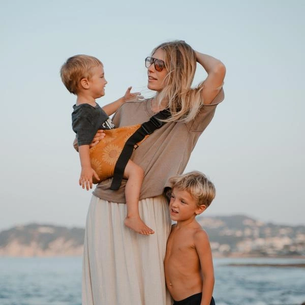 Nosidło wspomagające Wildride w kolorze wakacyjnego, ciemnego turkusu, to praktyczne nosidło, które zapewnia ergonomiczny komfort noszenia dziecka. Zaprojektowane tak, żeby odciążać rodzica przy noszeniu dziecka „na biodrze”. Stanowi naturalne podparcie dla dziecka, podczas gdy rodzic ma swobodę ruchu. Wildride jest wygodne dla dziecka – nie ogranicza widoczności i zapewnia bliskość rodzica.