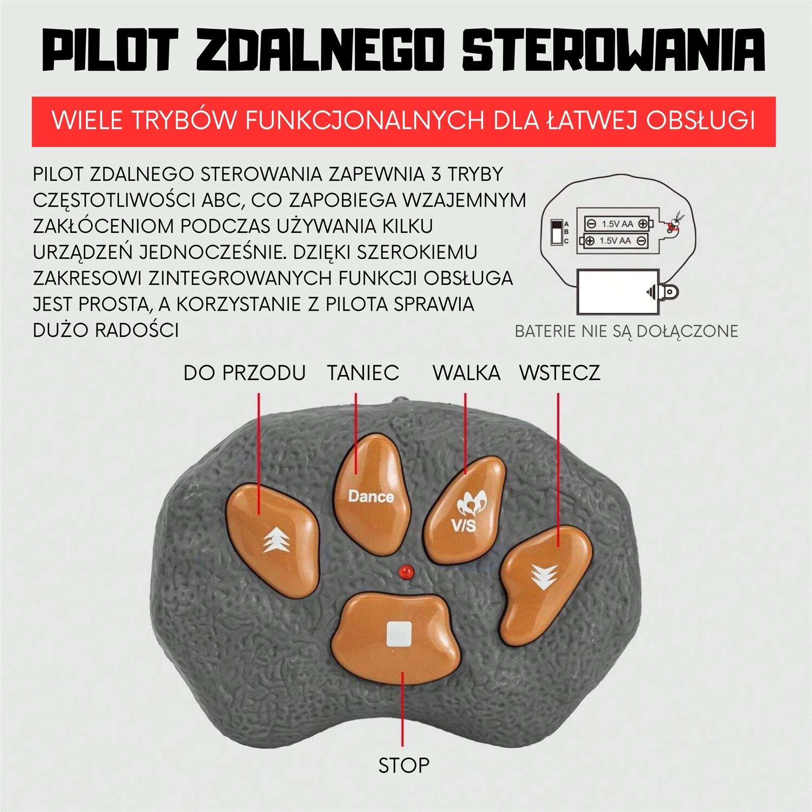 - - Wydaje potężne ryki, symulując prawdziwe odgłosy dinozaura