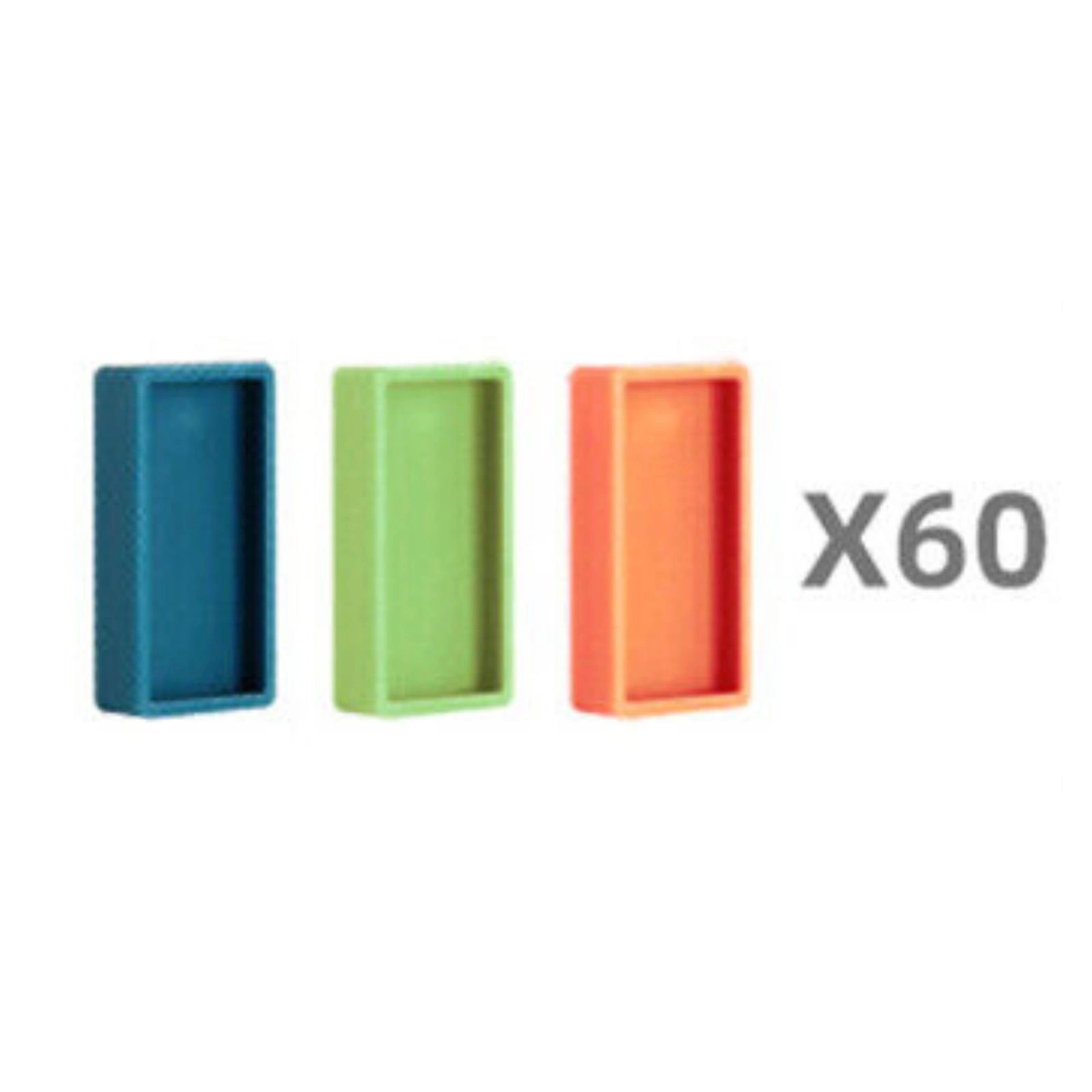 - - 60 klocków domino ( pomarańczowe, niebieskie, zielone)