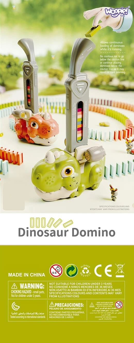 Kolorowy Dinozaur Domino od marki WOOPIE to gra, która łączy zabawkowe pociągi i domino, tworząc przyjemny i oryginalny sposób gry. Dźwięk i oświetlenie sprawia, że gra jest bardziej zabawna i atrakcyjna oraz stymuluje zainteresowanie dzieci zabawą. Aby rozpocząć grę, wystarczy wypełnić ciuchcię podajnikiem na domino, rozpocząć zabawę i cieszyć się procesem. Ponadto ciuchci towarzyszą charakterystyczne dźwięki i podświetlenie, co dodaje jeszcze większą dynamikę do gry.