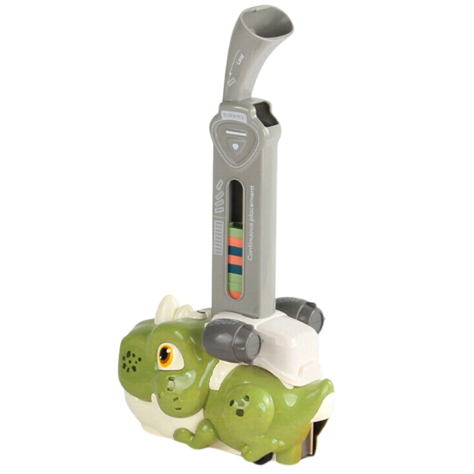 Kolorowy Dinozaur Domino od marki WOOPIE to gra, która łączy zabawkowe pociągi i domino, tworząc przyjemny i oryginalny sposób gry. Dźwięk i oświetlenie sprawia, że gra jest bardziej zabawna i atrakcyjna oraz stymuluje zainteresowanie dzieci zabawą. Aby rozpocząć grę, wystarczy wypełnić ciuchcię podajnikiem na cegły, rozpocząć zabawę i cieszyć się procesem. Ponadto ciuchci towarzyszą charakterystyczne dźwięki i podświetlenie, co dodaje jeszcze większą dynamikę do gry.