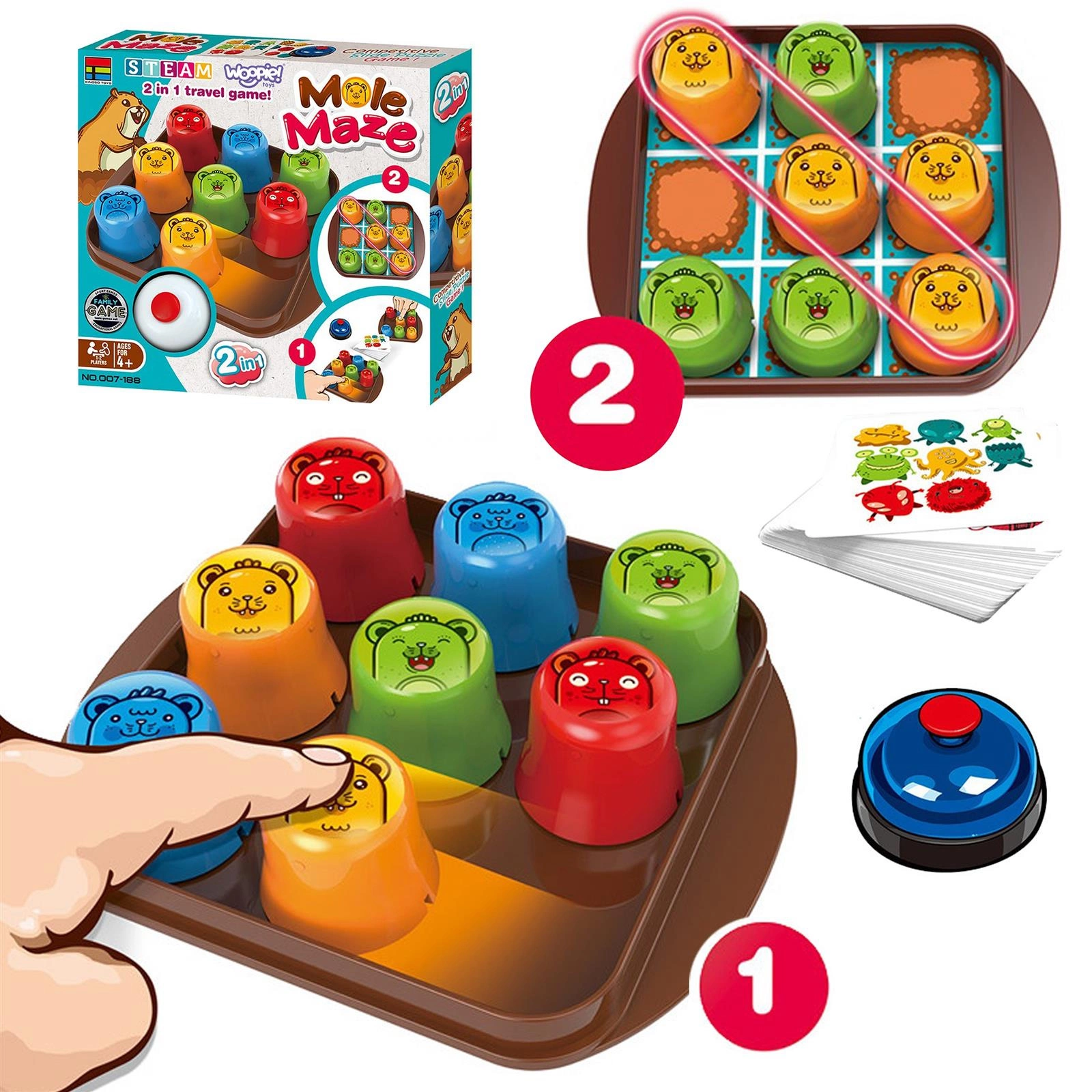Gra MOLE MAZE to gra edukacyjna niezwykle wciągająca. Oferuje ona unikalne połączenie rozrywki i wartości edukacyjnych. Gra przeznaczona jest dla 1-2 graczy. Dzięki wielu sposobom gry, MOLE MAZE idealnie nadaje się do gry i nauki w podróży. Gra zawiera kolorowe karty, które zachęcają dzieci do zabawy. Dostępna jest dla młodszych dzieci jak i starszych.  Gra poprawia umiejętności rozwiązywania problemów, świadomość przestrzenną, rozwija myślenie oraz koordynację wzrokową. Gra posiada przenośną konstrukcję, dzięki czemu jest wygodna podczas wycieczek.