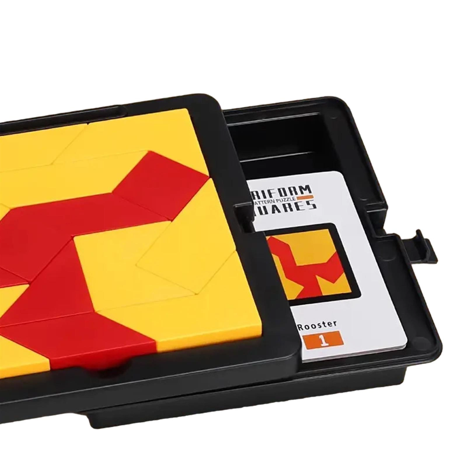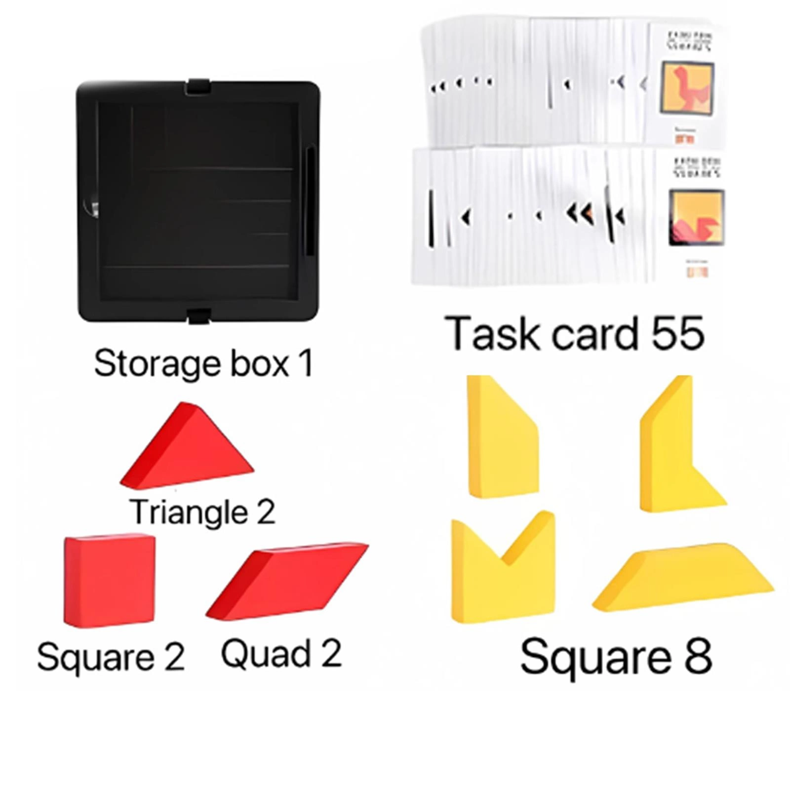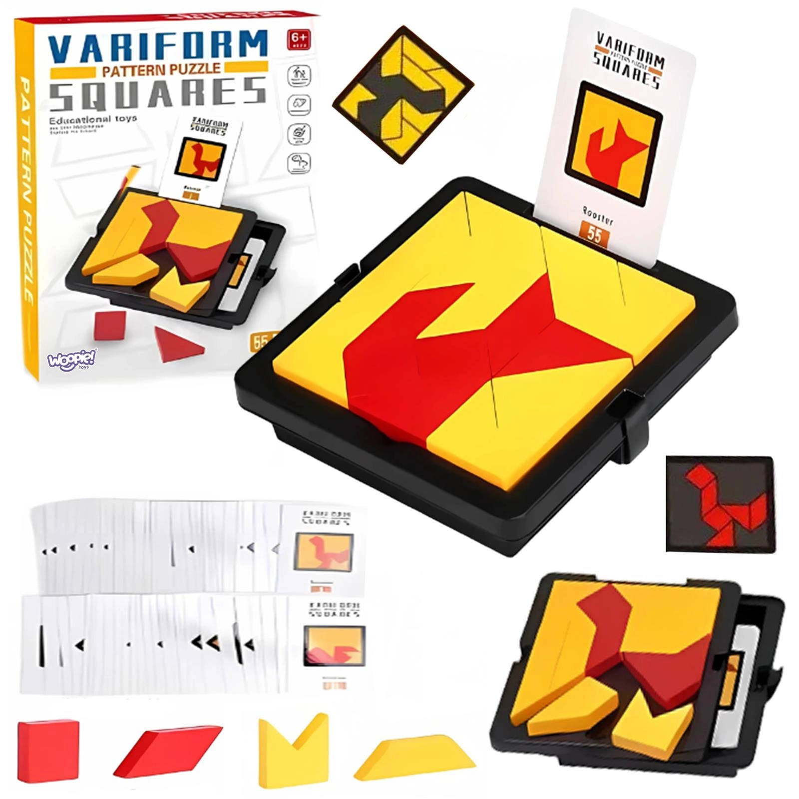 Tangram Gra Logiczna Kieszonkowa od firmy WOOPIE to gra, która pozwala rozwijać umiejętności spostrzegawcze jak i kreatywne. Celem gry jest ułożenie z dostępnych elementów określonych wzorów przedstawionych na kartach. Gracz musi dopasować klocki tak, aby odwzorować wzory, nie pozostawiając pustych miejsc ani nie nakładając elementów na siebie. Dziecko dzięki różnym drewnianym klockom może układać wiele wzorów, każdy w coraz to cięższej kategorii. Przez co może ono rozwijać wyobraźnie i ćwiczyć logiczne myślenie.Ta gra jest również ćwicząca pamięć dzięki dolnej szufladce, której można schować karty. Jest to gra dla osób w każdym wieku ! Przez jej kompaktową wielkości może posłużyć jako rozrywka podczas podróży jak i w domu. Idealna na prezent dla każdego.