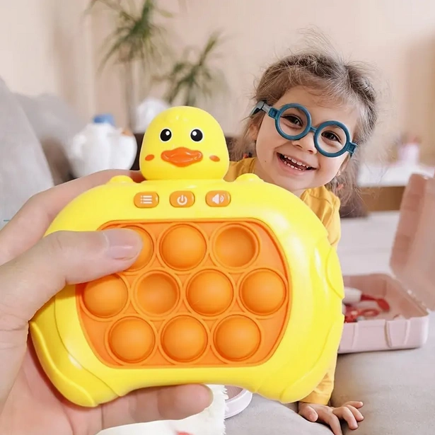 Gra POP IT Kaczka to zabawka antystresowa, która sprawdzi się już dla najmłodszych. Gra wydaje radosne dźwięki, które zachęcają dzieci do zabawy i urozmaicają rozgrywkę. Zabawka jest niewielka więc, sprawia, że możemy zabrać ją ze sobą. Pop It sprawia frajdę dzieciom oraz dorosłym, którzy chętnie po nią sięgają. Rozwija umysł, zdolności manualne, koordynację wzrokowo-ruchową oraz trenuje spostrzegawczość i pomaga w walce ze stresem.