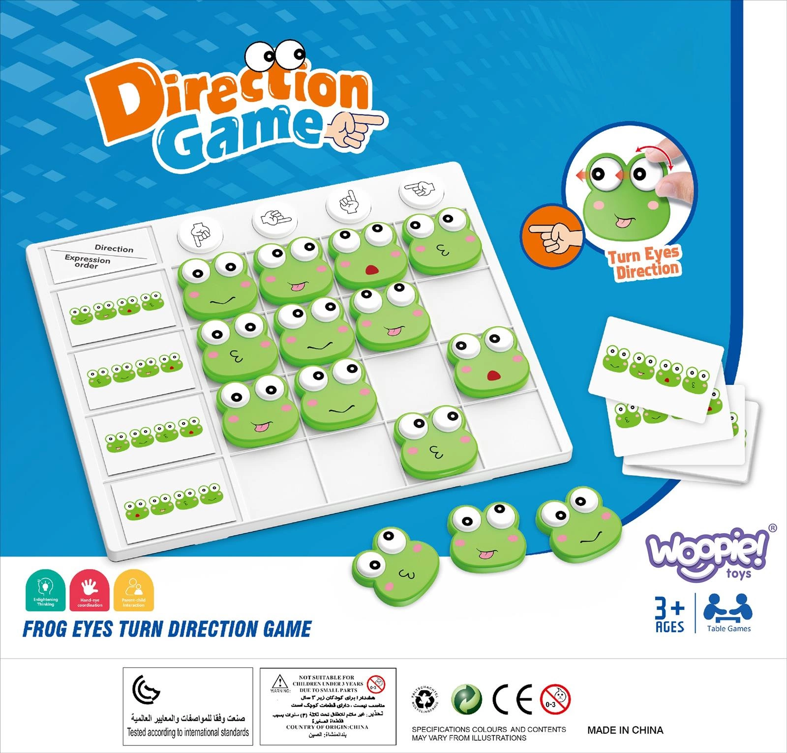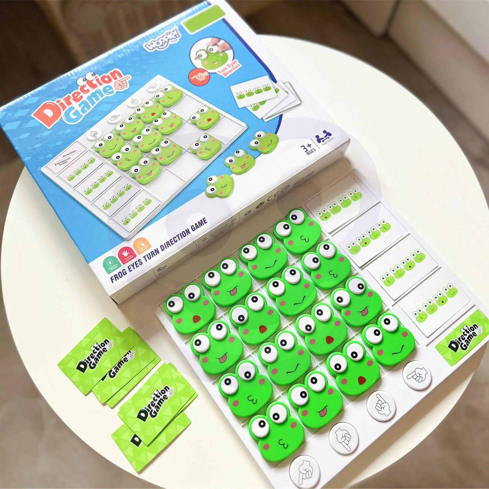 Gra dla dzieci Żabie Oczka od Marki WOOPIE, to świetna gra dla dzieci, która pomoże w nauce rozpoznawania stron prawo, lewo, góra, dół. Dodatkowo dzięki niej twoje dziecko wyćwiczy koordynację oko- ręka, oraz będzie trenować małą motorykę. To edukacyjna i innowacyjna zabawka, która zapewnia dzieciom zabawę i naukę. Każda chwila zabawy jest ekscytującą podróżą odkrywania, rozwoju i zabawy. Misją dzieci jest identyfikacja emocjonalnej ekspresji żabek i kierowanie ich oczami tak aby odwzorować wzór. Wyzwania stymulują logiczne myślenie, pomagając dzieciom analizować sytuacje i znaleźć strategiczne rozwiązania. Kiedy angażujemy się w gry, które wiążą się z emocjami i rozwiązywaniem problemów, dzieci ćwiczą swoje umiejętności poznawcze i decyzyjne.