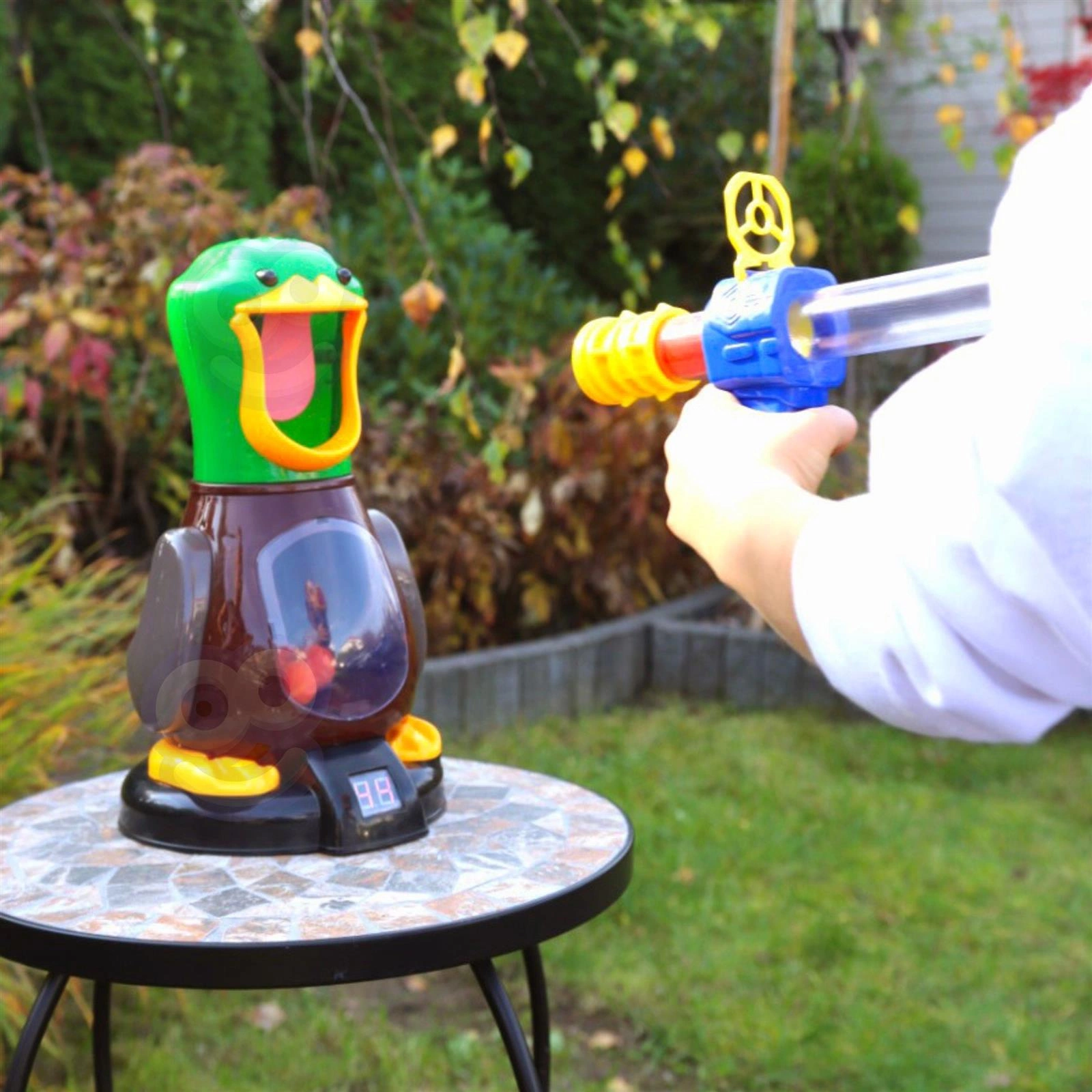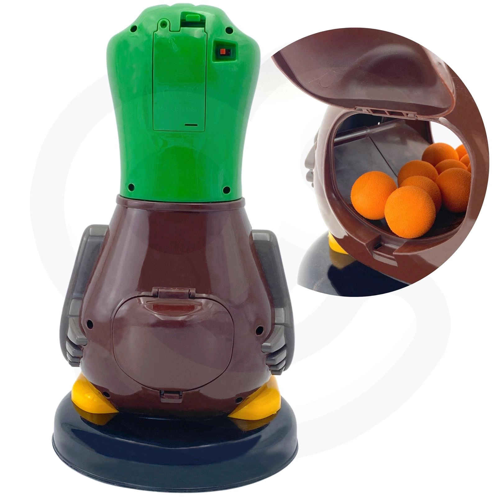 - - celujemy w język kaczki, po wpadnięciu do środka piłeczki kaczka liczy punkty i wyświetla wynik na wyświetlaczu
