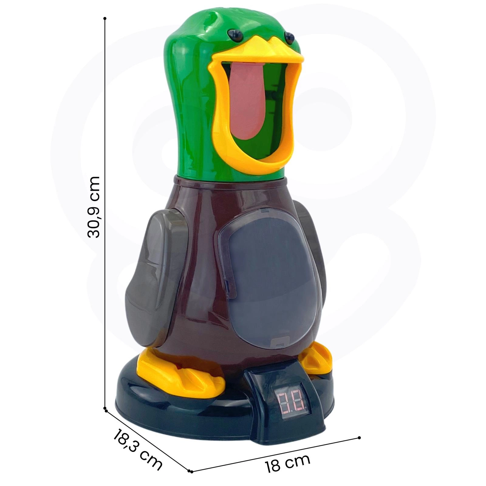Zabierz swoje dziecko do magicznego świata gier zręcznościowych z zabawką "Głodna Kaczka"! To dynamiczna gra zręcznościowa od marki WOOPIE, przyniesie wiele radości zarówno dzieciom, jak i dorosłym. Ten zestaw to doskonały sposób na rozwijanie koncentracji, celności i koordynacji ruchowej. Celem gry jest strzelanie piłkami do otworu znajdującego się w dziobie kaczora. Gracz, używając specjalnego pistoletu, musi precyzyjnie celować i trafić piłką do kaczora. Za każde trafienie kaczor liczy punkty, które wyświetlane są na ekranie znajdującym się u jego podstawy. Gra może być rozgrywana solo lub w trybie rywalizacji, gdzie gracze porównują swoje wyniki.