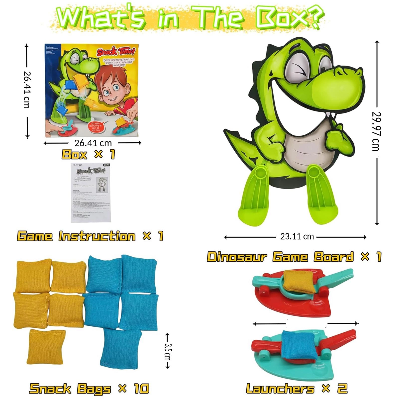 Gra zręcznościowa "Głodny Dinozaur" od marki WOOPIE to emocjonująca rozgrywka dla całej rodziny. Gra łączy w sobie dynamiczną zabawę i prostą mechanikę, zachęca do rywalizacji, rozwija koordynację ruchową oraz celność. Uczestnicy próbują przerzucać woreczki przez usta dinozaura za pomocą wyrzutni, co sprawia, że zabawa jest zarówno ekscytująca, jak i wymagająca. Wygrywa osoba, która pierwsza pozbędzie się woreczków.