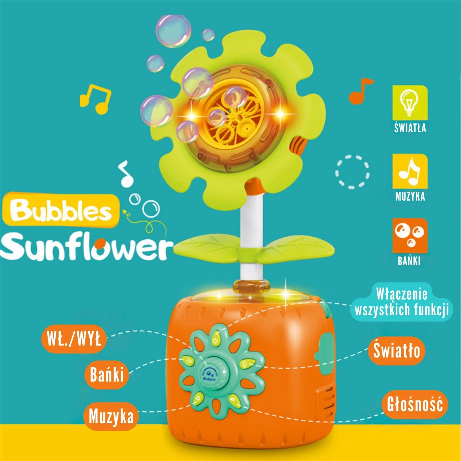 - - Automatyczna produkcja baniek – słonecznik sam wypuszcza mnóstwo baniek, tworząc magiczną atmosferę.