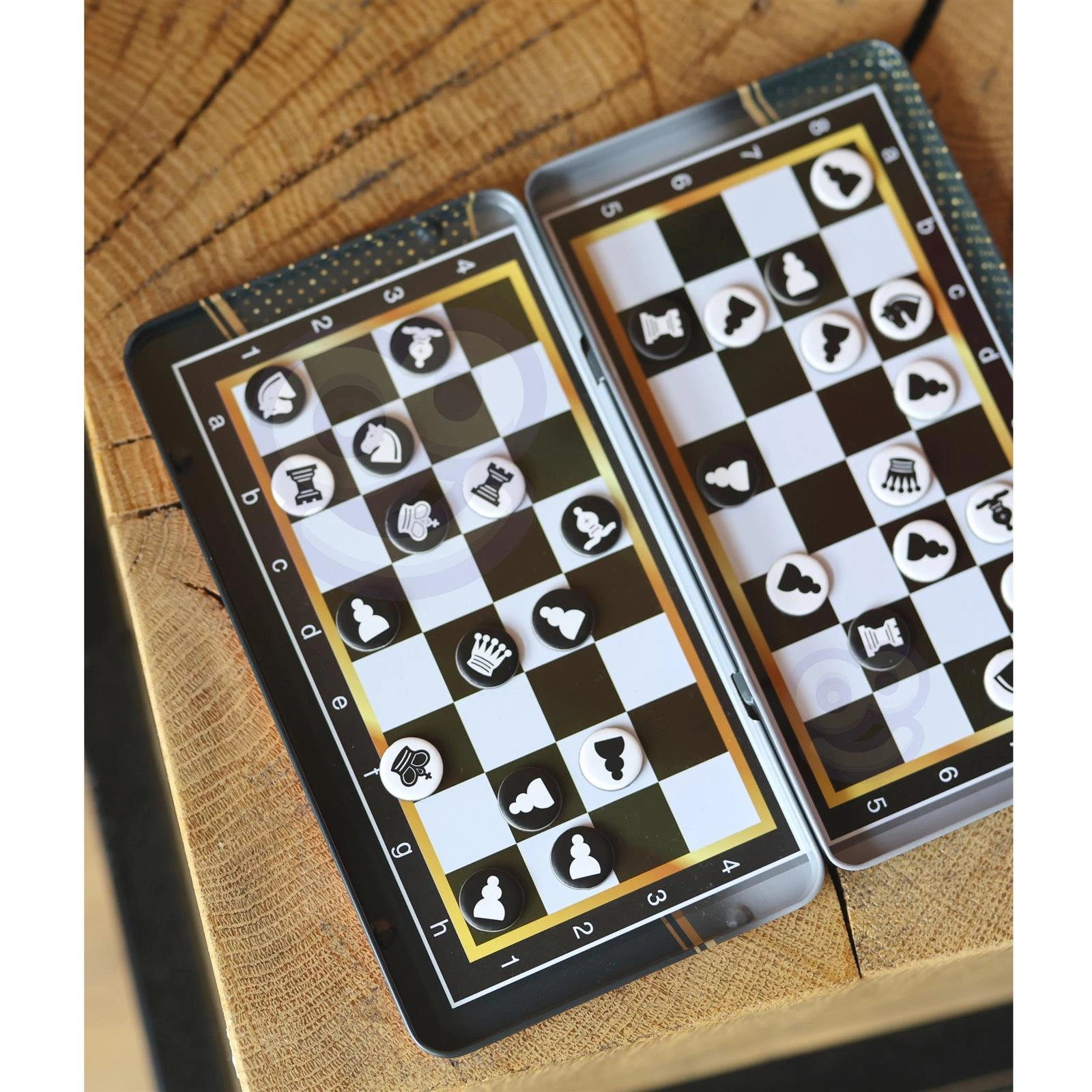 Chyba każdy słyszał o szachach. To jedna z najstarszych gier, która do dziś ma swoje szerokie grono fanów, a grać w nią mogą zarówno dzieci jak i dorośli. Szachy magnetyczne od Woopie to ciekawa propozycja dla osób, które dużo podróżują lub spędzają dużo czasu poza domem, a chcą zawsze mieć opcję sięgnięcia do swojej ulubionej gry. Kompaktowe, lekkie pudełko zmieści się do każdej torebki lub plecaka, a magnetyczne pionki sprawiają, że można zagrać partyjkę w dowolnym miejscu, nawet w trudnych warunkach nie bojąc się, że znaczniki się poprzesuwają i zgubimy przebieg partii. Metalowe pudełko służy nam zarówno za opakowanie jak i za planszę, dzięki czemu gabaryt gry jest ograniczony do minimum. Dodatkową opcją zestawu jest możliwość zagrania w warcaby, które w prostocie swoich zasad idealnie sprawdzą się jako wprowadzenie do świata bardziej skomplikowanych szachów.