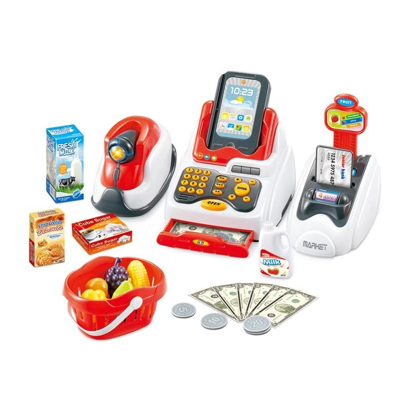Kasa Sklepowa z wieloma akcesoriami od Woopie to idealna propozycja dla dzieci powyżej 3 roku życia. Zabawka w szczególności rozwija świadomość oraz pobudza wyobraźnię dzieci i zachęca je do kreatywnego myślenia. Kasa posiada wiele gadżetów i akcesoriów przez które Twoje dziecko poczuje się jak w prawdziwym sklepie np. kasę fiskalną ze skanerem i terminalem, koszyk czy pieniądze. Klient może zapłacić na dwa sposoby: tradycyjnie za pomocą pieniążków oraz karty płatniczej. Kasa posiada skaner produktów, który po przyciśnięciu wydaje dźwięk skanowania i świeci. Wszystko to jest dołączone do zestawu i zapewni dziecku długie godziny niezapomnianej zabawy wśród przyjaciół - nieważne gdzie, nieważne kiedy!