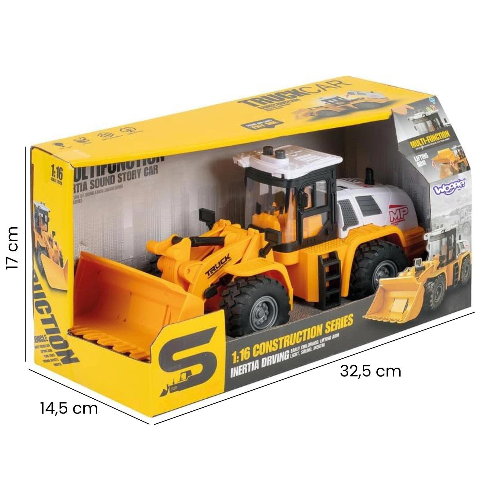 Ładowarka budowlana 1:16 od marki Woopie pozwoli twojemu dziecku wcielić się w rolę operatora prawdziwej maszyny budowlanej! Ta ładowarka to realistycznie odwzorowana zabawka, która zachwyci każdego małego fana pojazdów ciężkich. Realistyczny wygląd, ruchome elementy oraz efekty świetlne i dźwiękowe sprawią, że każda zabawa zamieni się w prawdziwą budowlaną przygodę. Solidna konstrukcja i wiele funkcji zapewniają długie godziny kreatywnej rozrywki.