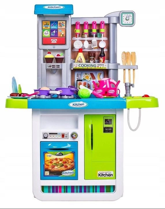 Kuchnia Domowa MY LITTLE CHEF Niebieska marki Woopie jest wszystkim czego potrzebuje młody pasjonata kuchni. Niezwykłe funkcje, w tym kran z prawdziwą wodą pozwolą poczuć się Twojemu dziecku jak w prawdziwej kuchni. Dodatkowo maluch ma dostęp do każdego zakamarka w kuchni, dzięki otwieranym elementom jak piekarnik i lodówka, co da mu brak ograniczeń w zabawie i pełne wykorzystanie zabawki. Zacznij gotować na palniku, który świeci i wydaje dźwięki. W krojeniu warzyw pomoże deska wbudowana w blat, a naczynia wysuszysz na specjalnej suszarce. MY LITTLE CHEF posiada mnóstwo gadżetów, których nie znajdziesz w swojej kuchni m.in: panel dotykowy wydający dźwięki i melodie, zegar, radio czy ekspres do kawy. Wiele akcesoriów (jajko, kawa, sosy itp.) sprawi, że Twoje dziecko nigdy nie znudzi się gotowaniem to kolejnych potraw. Pamiętaj, że dzieci uwielbiają naśladować swoich rodziców, a odgrywanie ról niezwykle rozwija wyobraźnie i kreatywność malucha!
