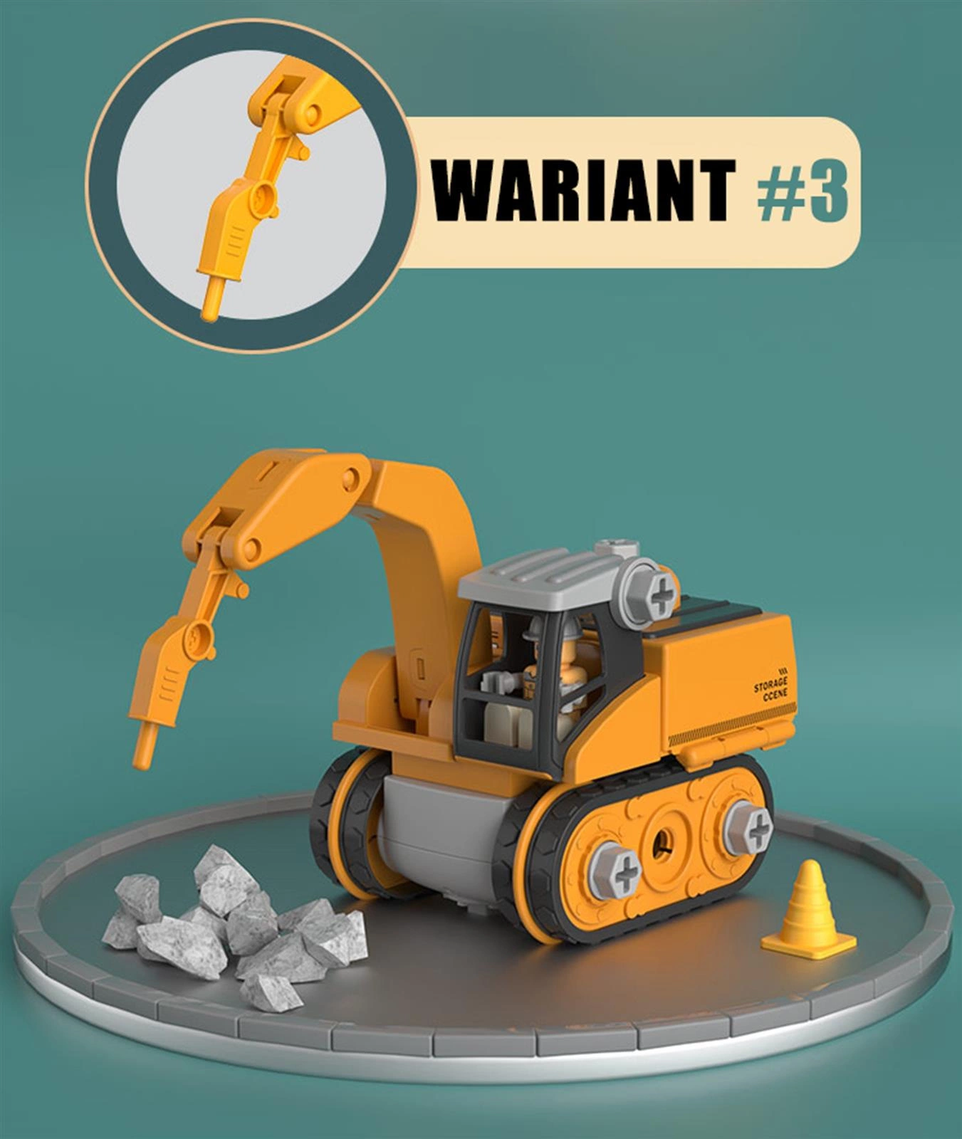 - - akcesoria m.in.: figurka budowlańca, gruz czy drewno