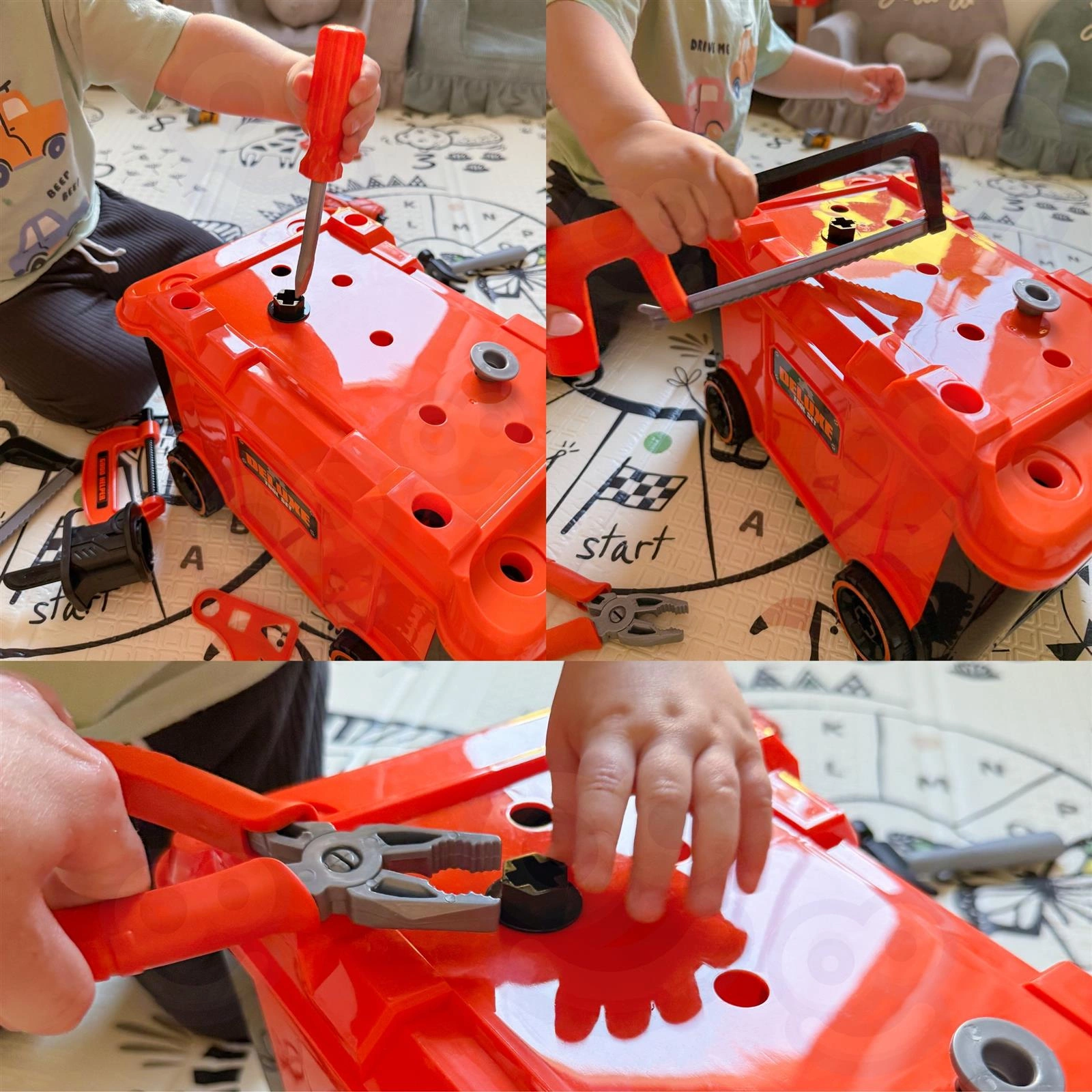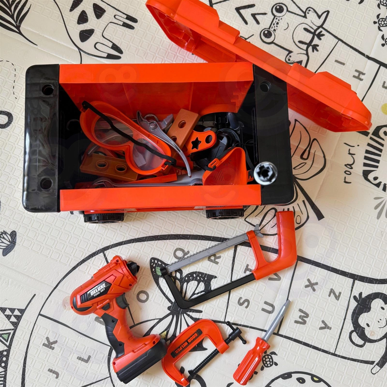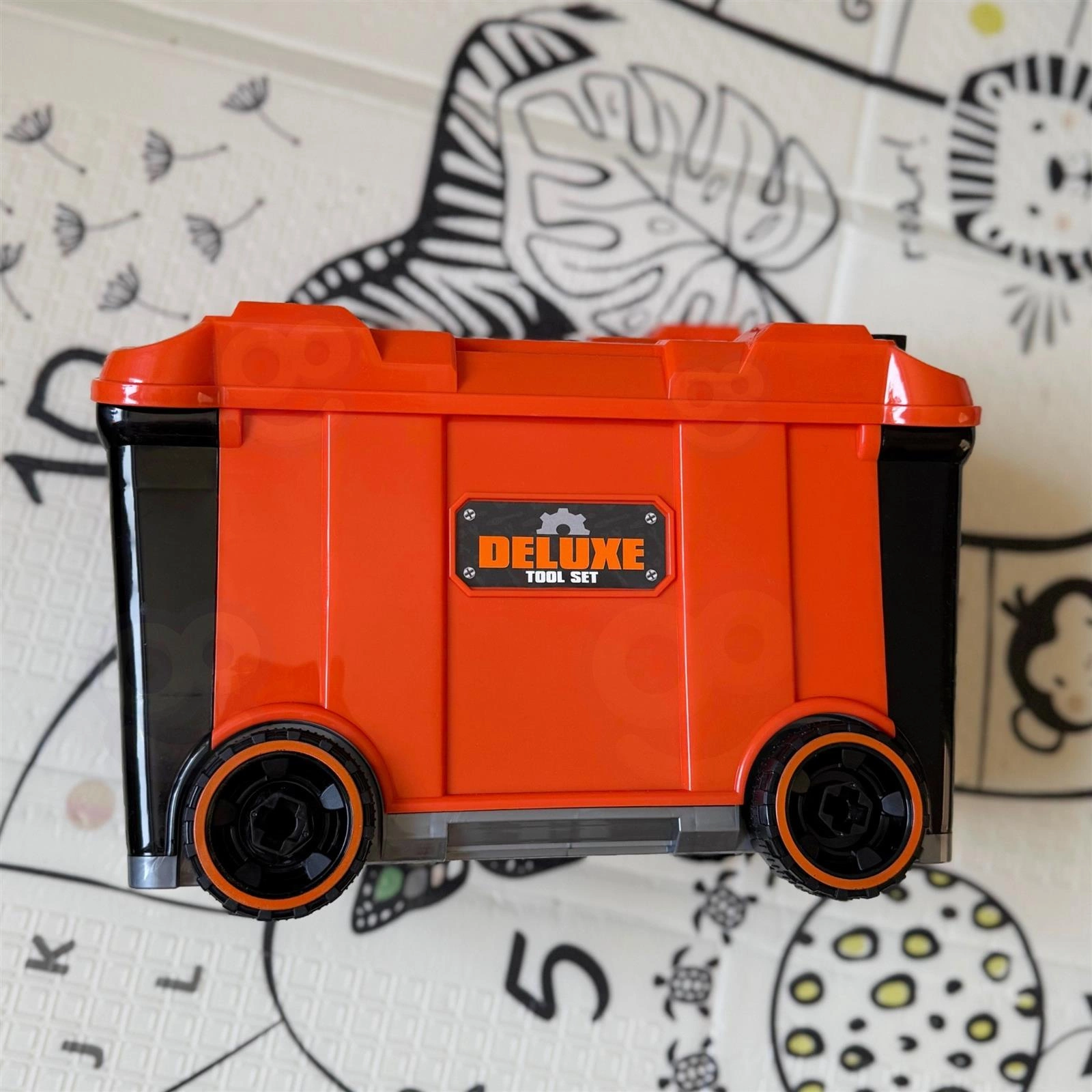 Mobilna Skrzynia Na Narzędzia Warsztat 2w1 Wykonana z solidnych tworzyw sztucznych z pomarańczowo-czarno-szarymi elementami, w łatwy i bezpieczny sposób pozwala dzieciom wcielić się w rolę prawdziwego fachowca. Ten funkcjonalny zestaw 2w1 to nie tylko warsztat, ale również walizka na kółkach, która stanie się ulubionym kompanem zabaw. Ten praktyczny zestaw wspiera kreatywną zabawę w odgrywanie ról i pozwala dzieciom na rozwijanie umiejętności manualnych poprzez zabawę.