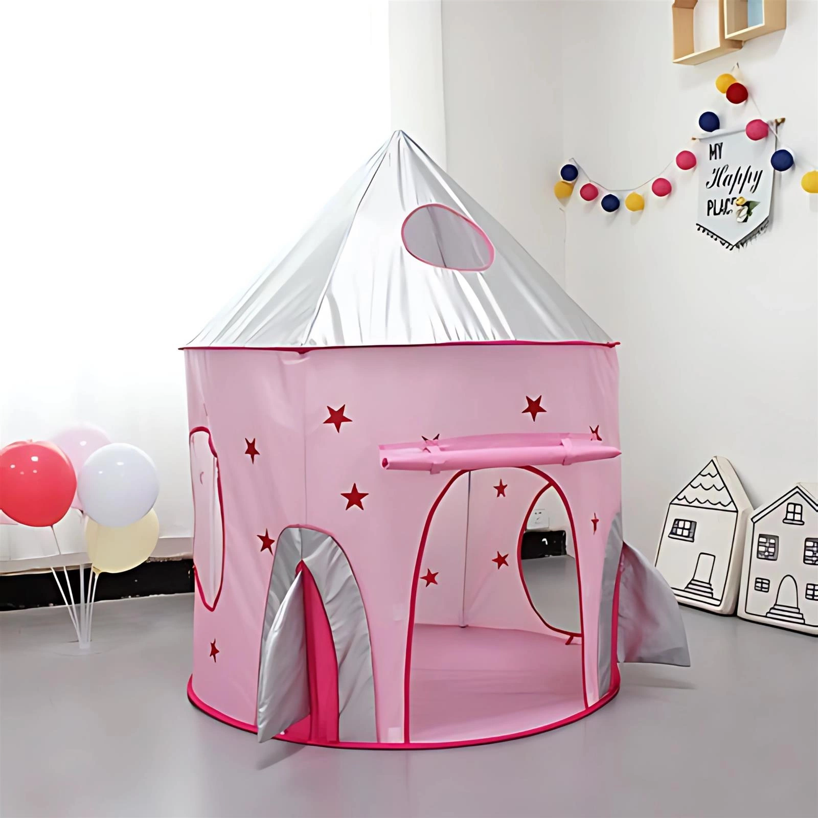 - - Majestatyczny namiot w kształcie zamkowej wieży, idealny do chowania się i snucia bajkowych opowieści