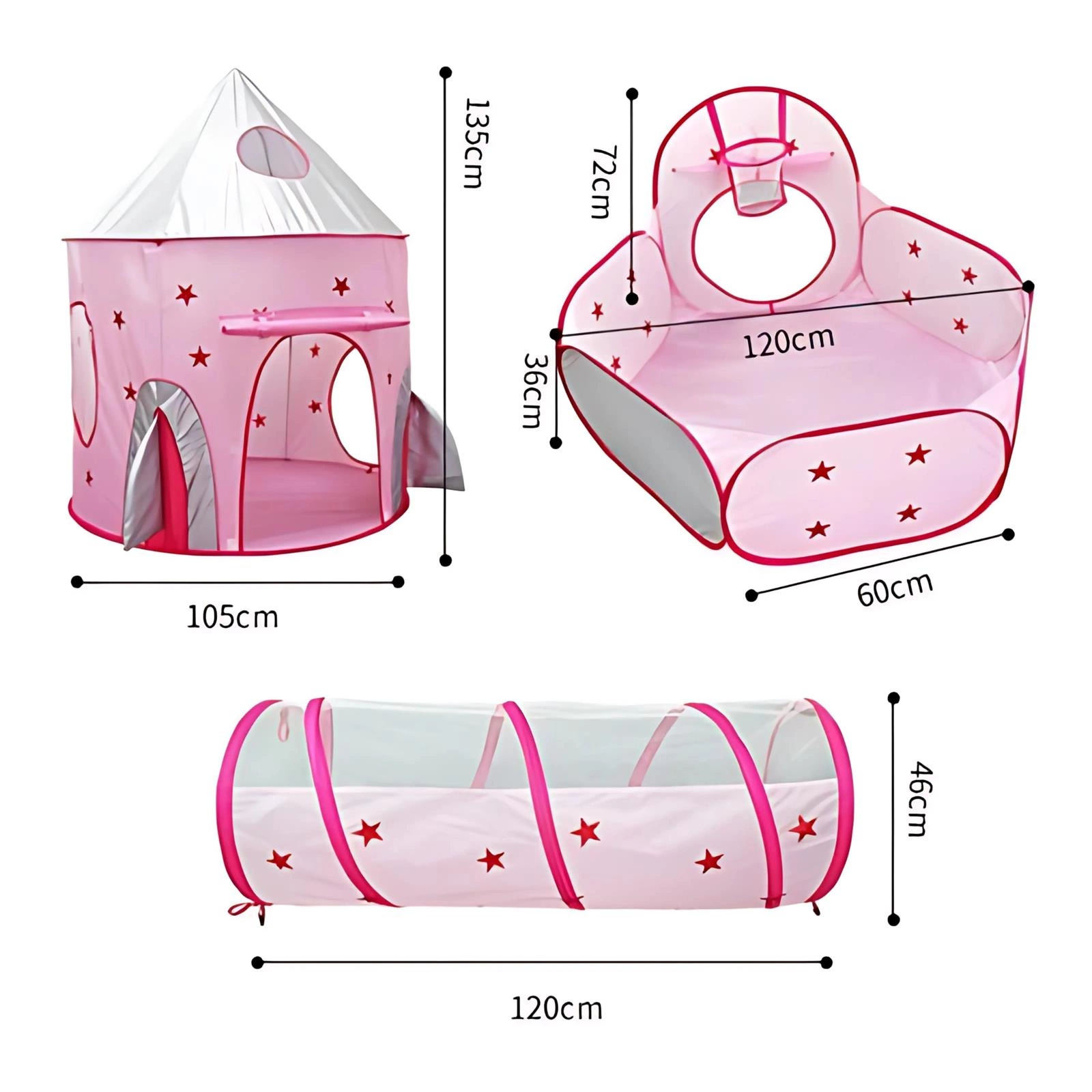 Nasz różowy zestaw do zabawy 3w1od marki Woopie to idealne miejsce na niezapomniane przygody, tajne kryjówki i godziny kreatywnej aktywności! Stworzony z myślą o małych marzycielach, którzy uwielbiają bawić się w księżniczki i odkrywać nowe światy.