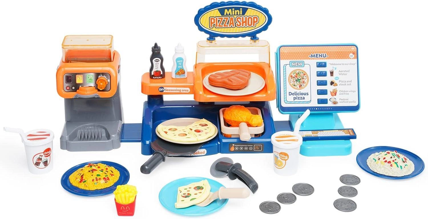 Mini Pizza Shop od marki WOOPIE oferuje nam wiele możliwości i pomysłów na zabawę. Możemy obsługiwać Klientów, tworzyć własne dania i serwować je gościom! Posiada ekran z przyciskami po naciśnięciu których sklep oferuje nam efekty dźwiękowe! Możemy wlać wodę do dystrybutora, i nalewać ją do specjalnie przeznaczonych do tego kubków ze słomką. Zestaw rozwija zdolności manualne, wyobraźnię, kreatywność oraz zdolności samodzielnego myślenia.