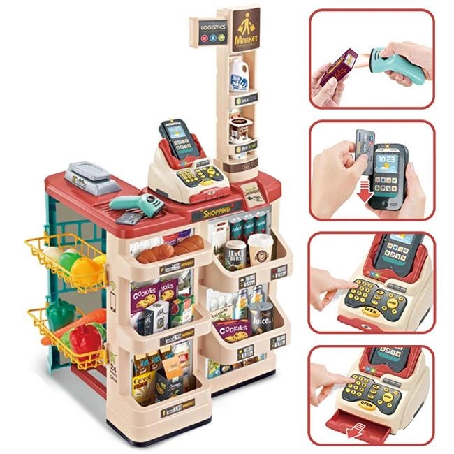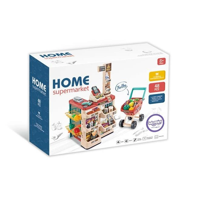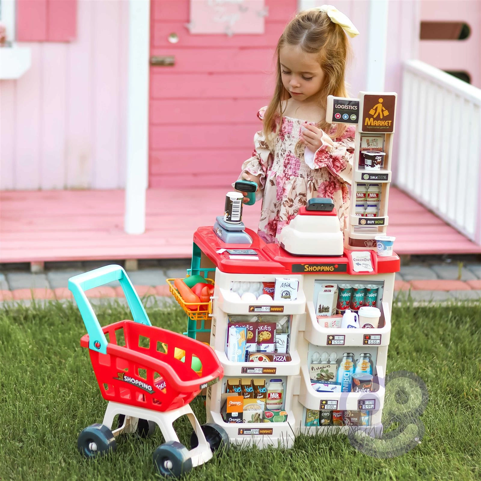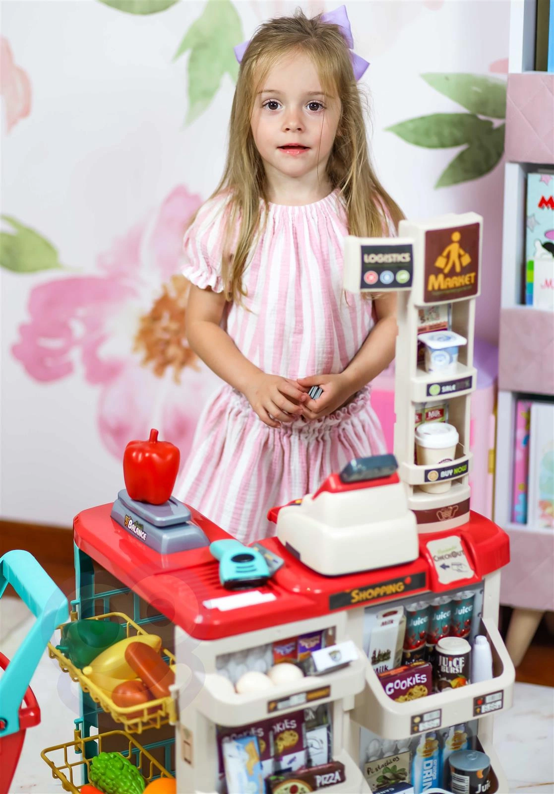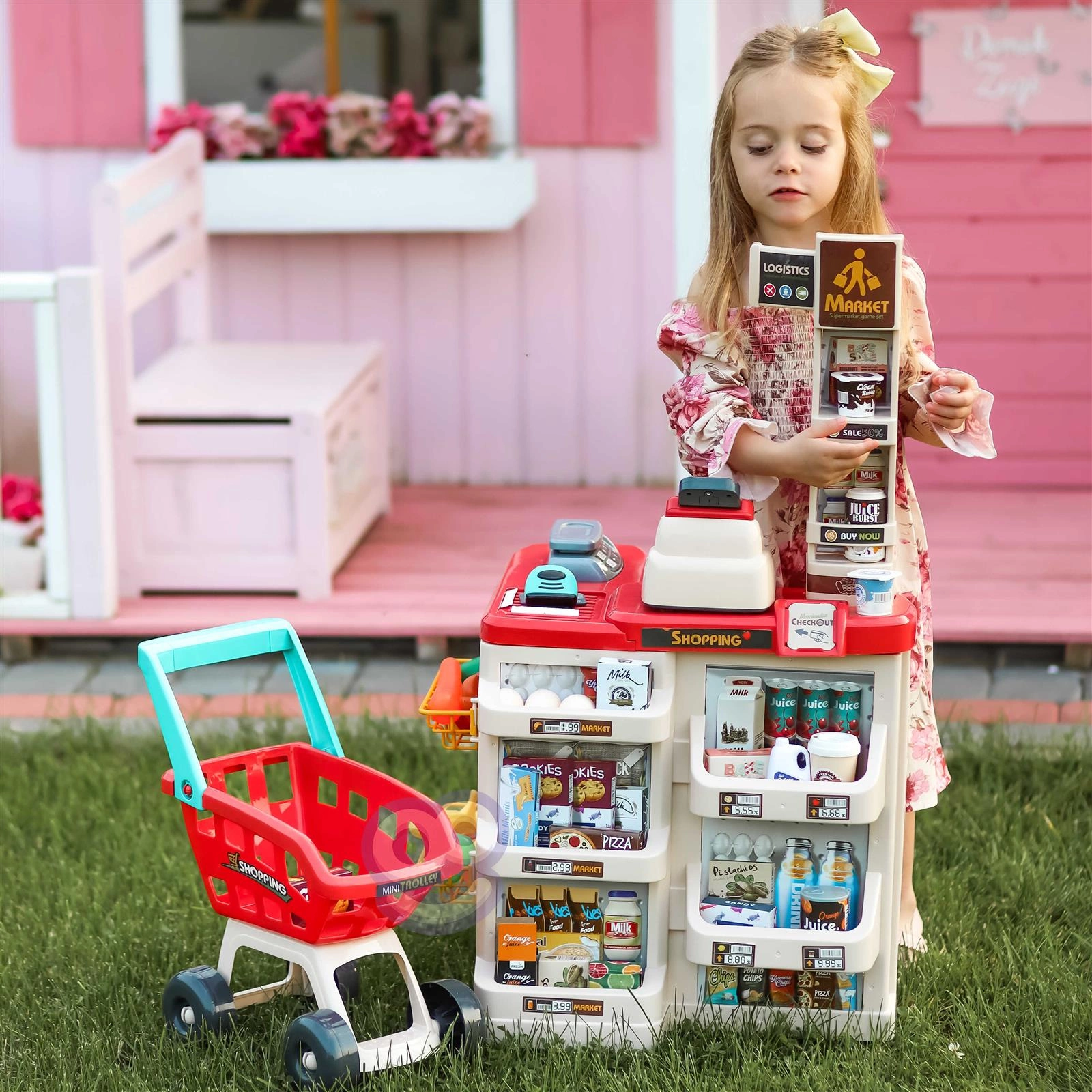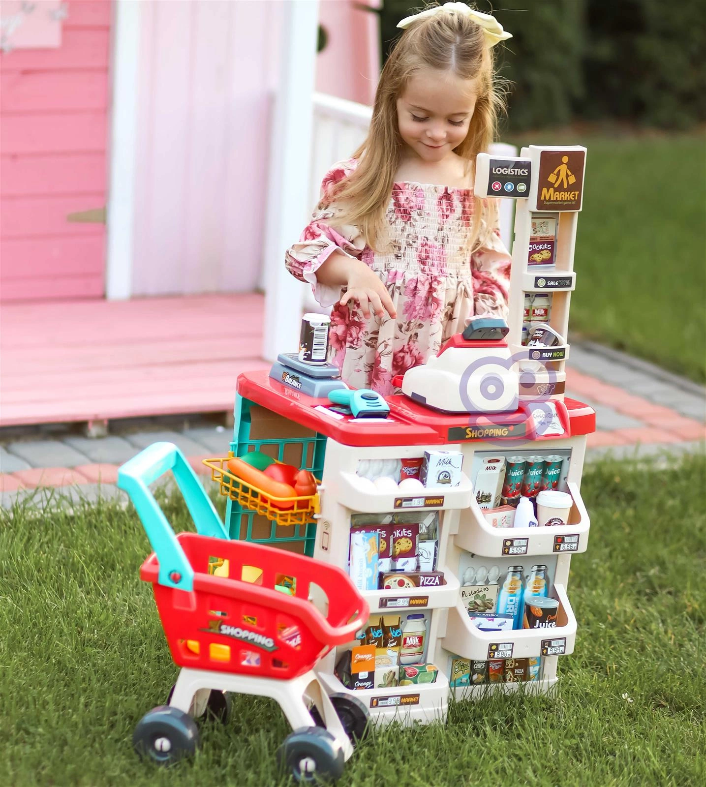WOOPIE Sklep Supermarket z Wózkiem Sklepowym Waga Kasa Skaner + 48 Akc.