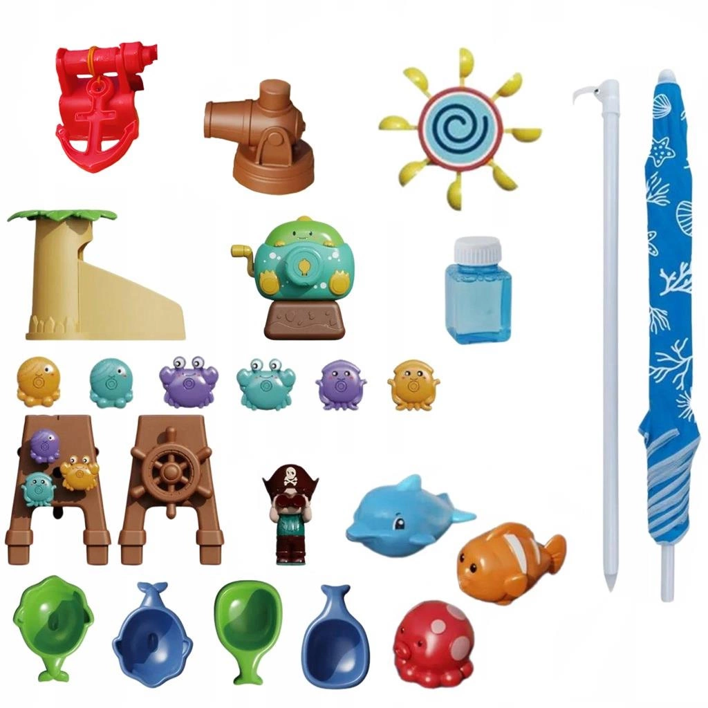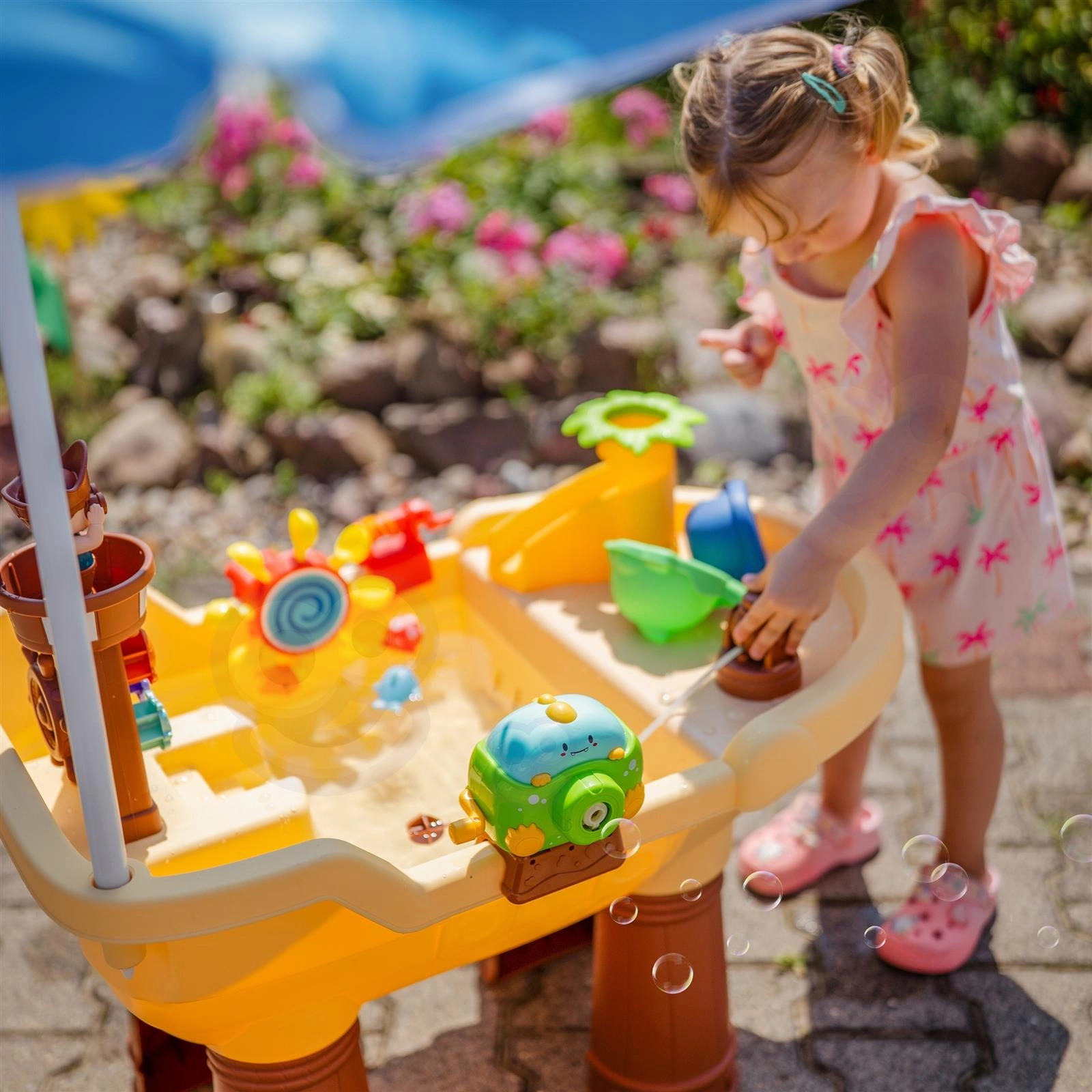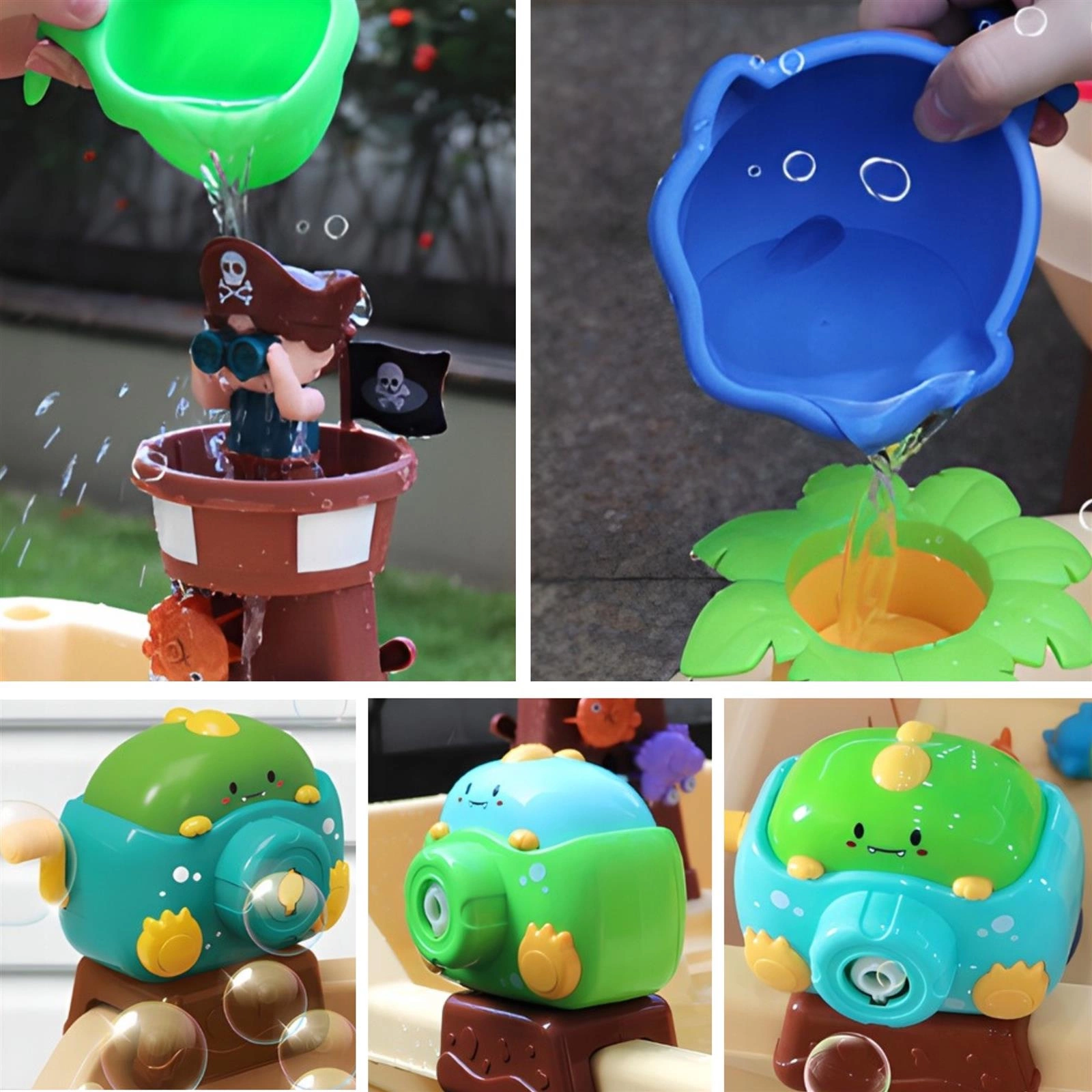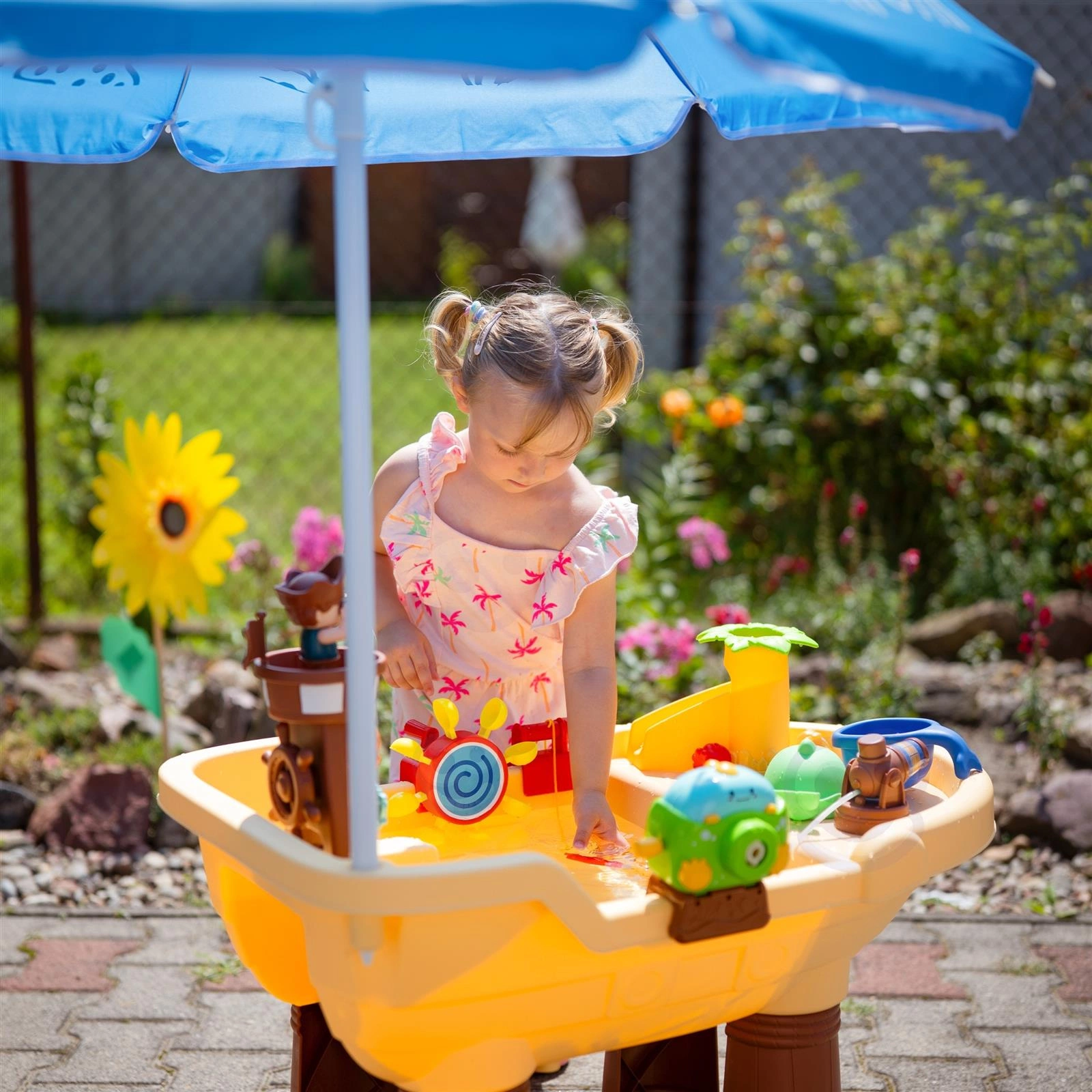 WOOPIE Stolik Wodny 2w1 Piaskownica Statek Piracki z Parasolem XL z Maszyna do Robienia Baniek Mydlanych