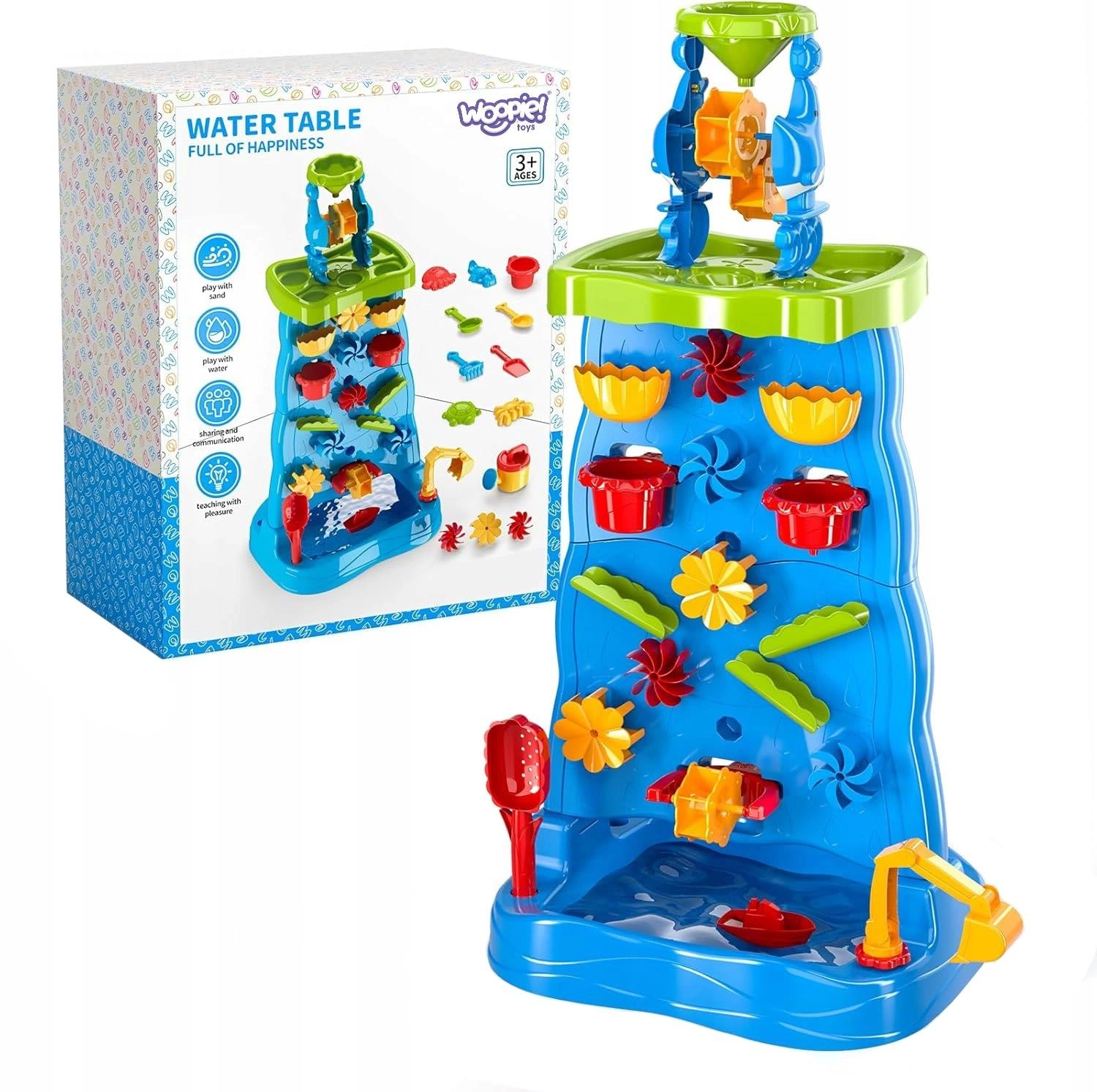 Stolik Wodny Dwustronna Ścianka Wodna marki Woopie to wyjątkowa zabawka, która zamieni każdy ogród lub plażę w miejsce pełne śmiechu i kreatywnej zabawy. Dzięki licznym kolorowym akcesoriom, ruchomym młynkom i pojemnikom dzieci mogą eksperymentować z wodą i piaskiem, rozwijając przy tym swoje zdolności manualne oraz wyobraźnię. Prosta konstrukcja i duże rozmiary sprawiają, że zabawka jest wygodna i atrakcyjna nawet dla kilkorga dzieci naraz.