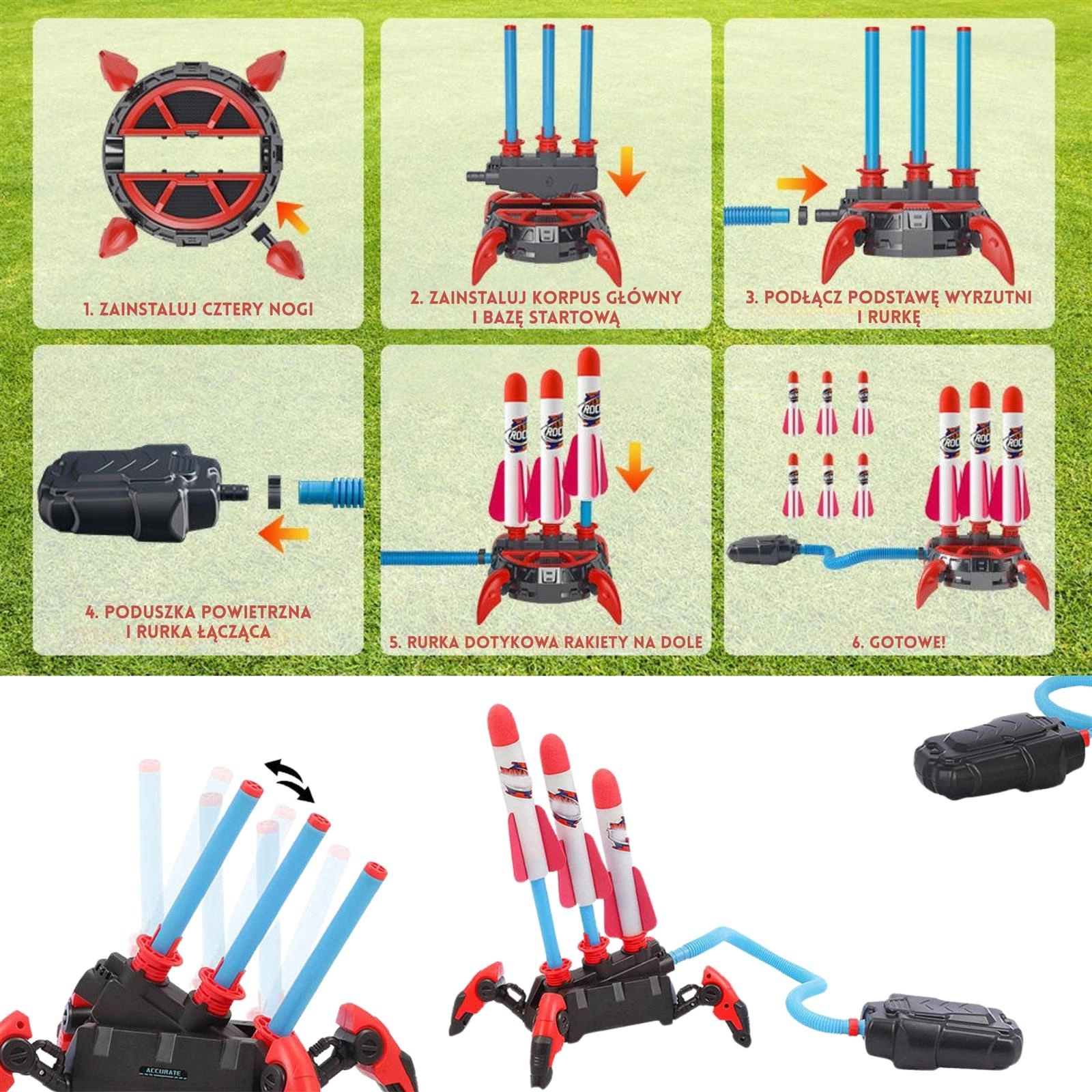 - - Napędzana powietrzem pompa nożna – wystarczy nacisnąć, aby rakieta wzbiła się w niebo,