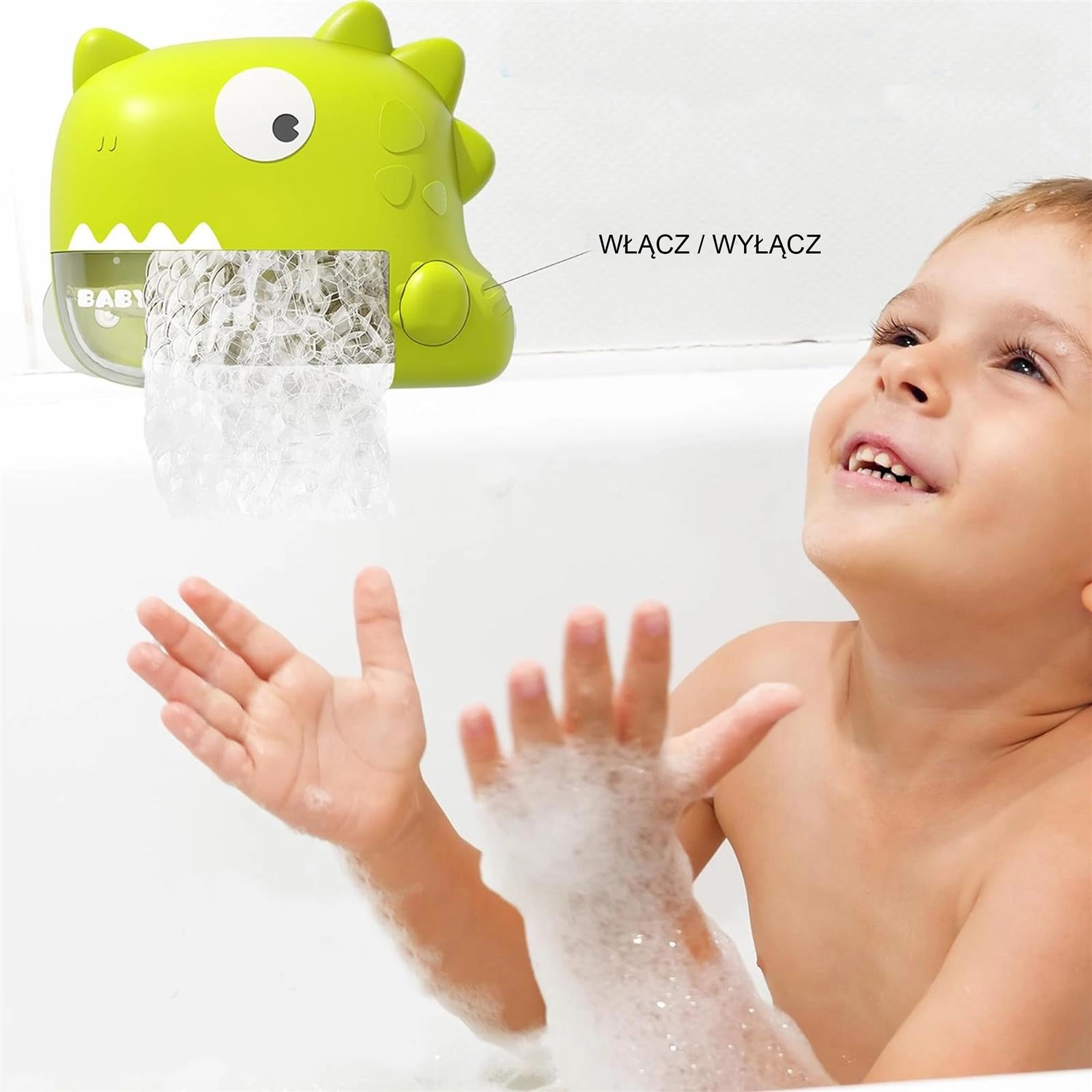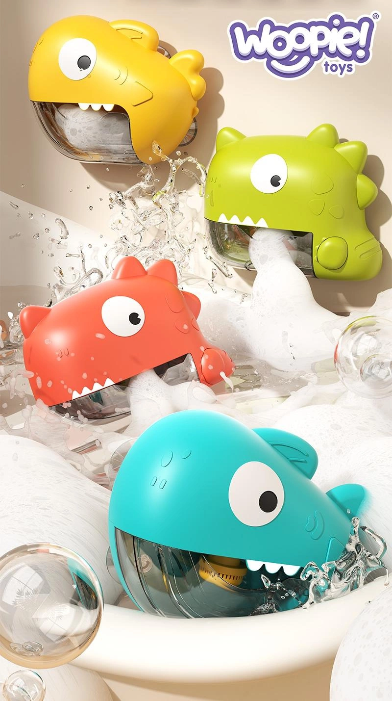 Maszyna do robienia baniek w kształcie dinozaura marki WOOPIE to świetna zabawka do kąpieli mająca pojemność 250 ml a wbudowany mocny silnik może automatycznie wygenerować ponad 5000 bąbelków dzięki czemu szybko napełnisz całą wannę. Maszyna do baniek mydlanych wykonana jest z wysokiej jakości ABS, z wodoodpornością IP6 a funkcja muzyki idealnie sprawdzi się na zewnątrz. Ulepszone przyssawki łatwo adsorbowane na gładkich powierzchniach, super przylepne dzięki czemu łatwo nie spadają. Dynamiczna muzyka i bąbelki inspirują dzieci do zabawy podczas kąpieli a maszynę można wyłączyć w dowolnym momencie.