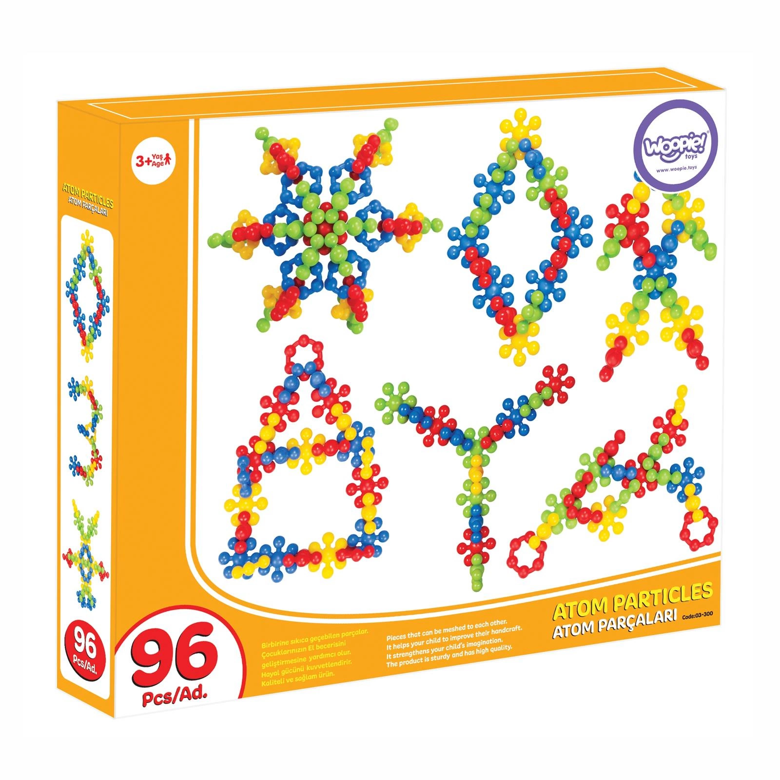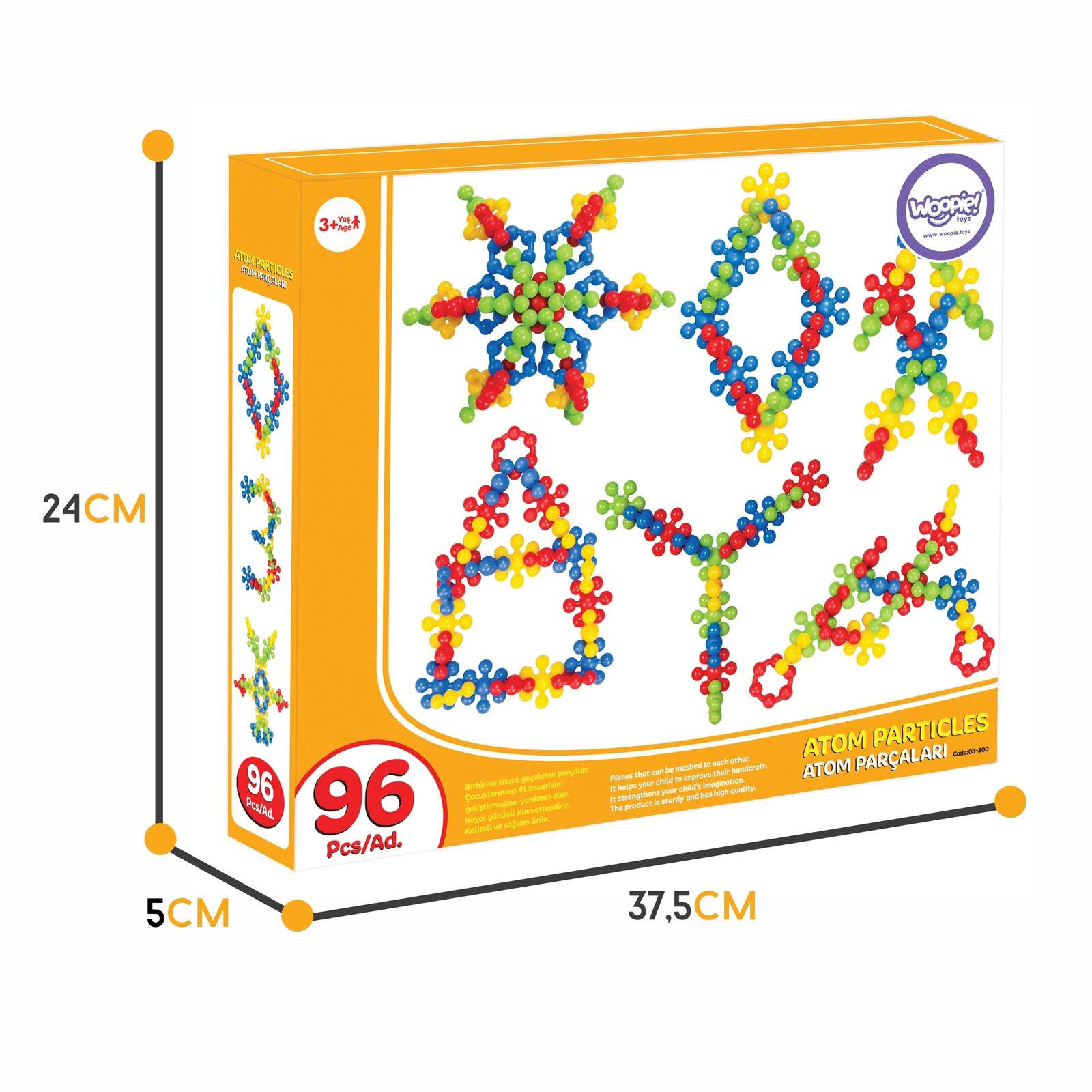 Zestaw klocków konstrukcyjnych atomów od marki Woopie to wszystko czego dzieci potrzebują, aby rozwijać zdolności umysłowe i jednocześnie świetnie się, przy tym bawić. Zestaw zawiera 96 szt. klocków wykonanych z przyjaznego materiału. Klocki są wielokolorowe i przypominają cząsteczki atomu. Elementy dają możliwość układania różnych przestrzennych konstrukcji oraz poziomych kształtów (w tym: modelu molekularnego, człowieka). Układanie klocków dostarczy wiele radości oraz jest doskonałym wsparciem dla rozwoju inteligencji Twojego maluszka. Zabawka rozwija zdolności motoryczne Twojego dziecka poprzez ruch dłońmi.