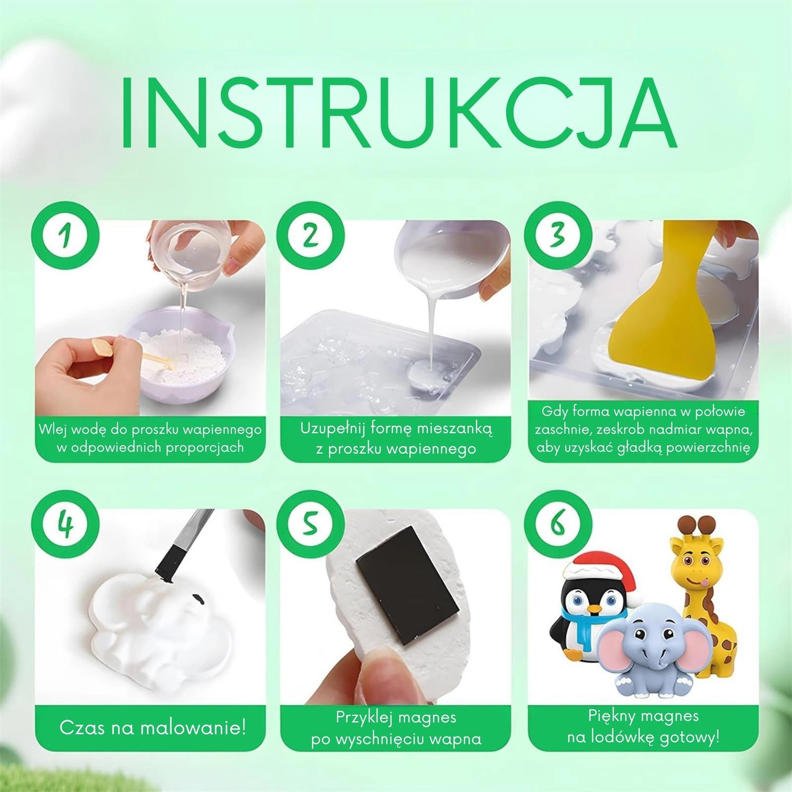 Stwórz własne mini zoo z zestawem DIY Animal Mould & Paint od marki WOOPIE! Ten wyjątkowy zestaw plastyczny pozwala dziecku samodzielnie odlać i pomalować urocze zwierzątka z gipsu – to świetna zabawa i rozwój w jednym. Idealny dla dzieci od 6. roku życia, które uwielbiają tworzyć, malować i eksperymentować z kolorami!