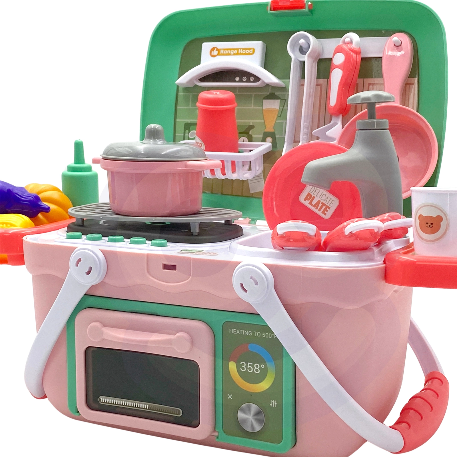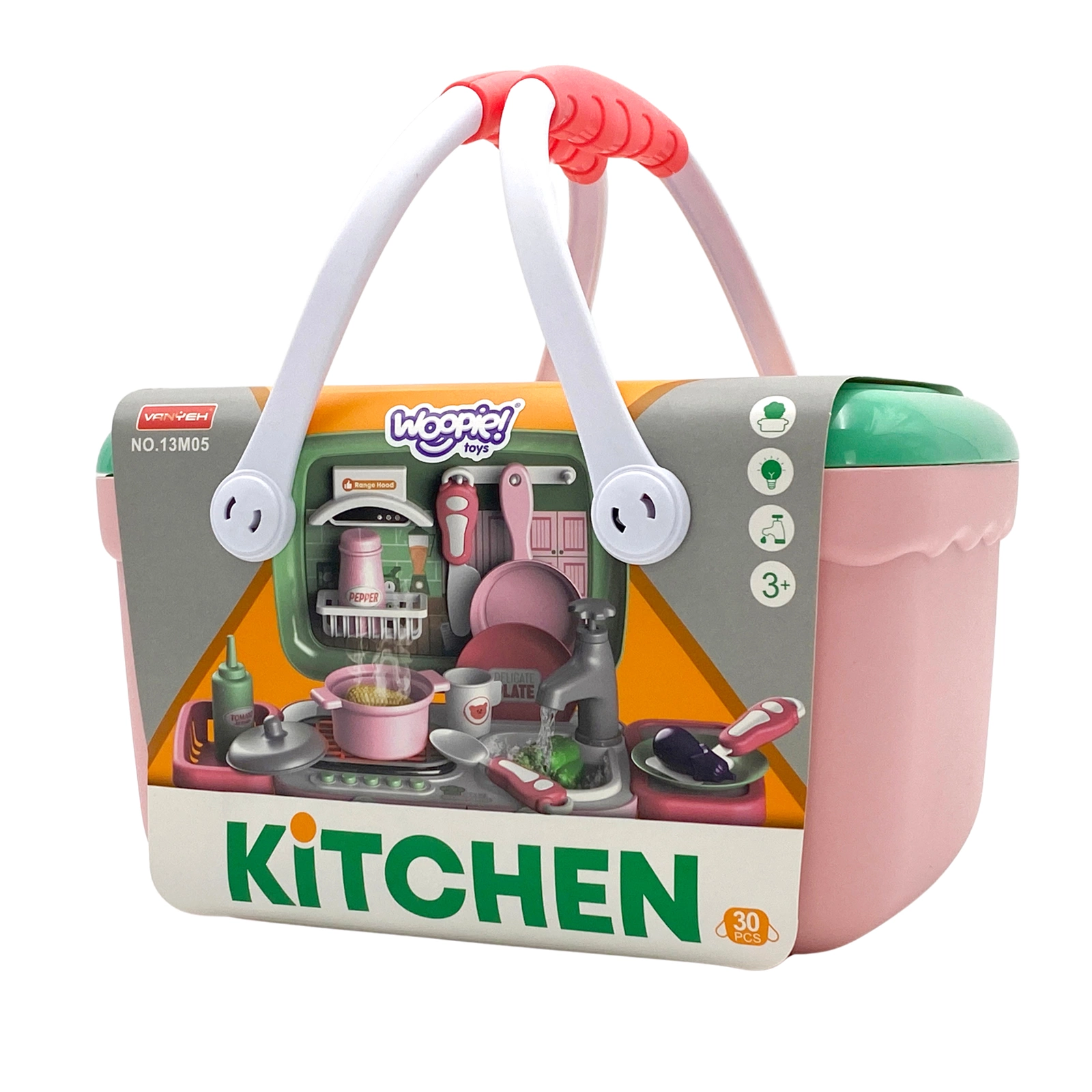 WOOPIE Zestaw Małego Kucharza 2w1 Kuchnia Przenośna w Koszyku 30 el