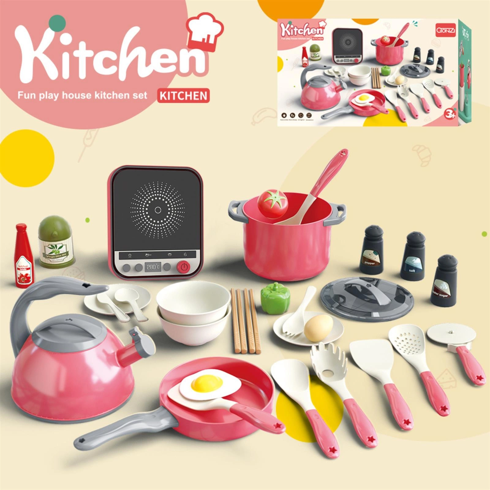 WOOPIE Zestaw Małego Kucharza Indukcja Garnki Patelnia Czajnik Różowy 30el.