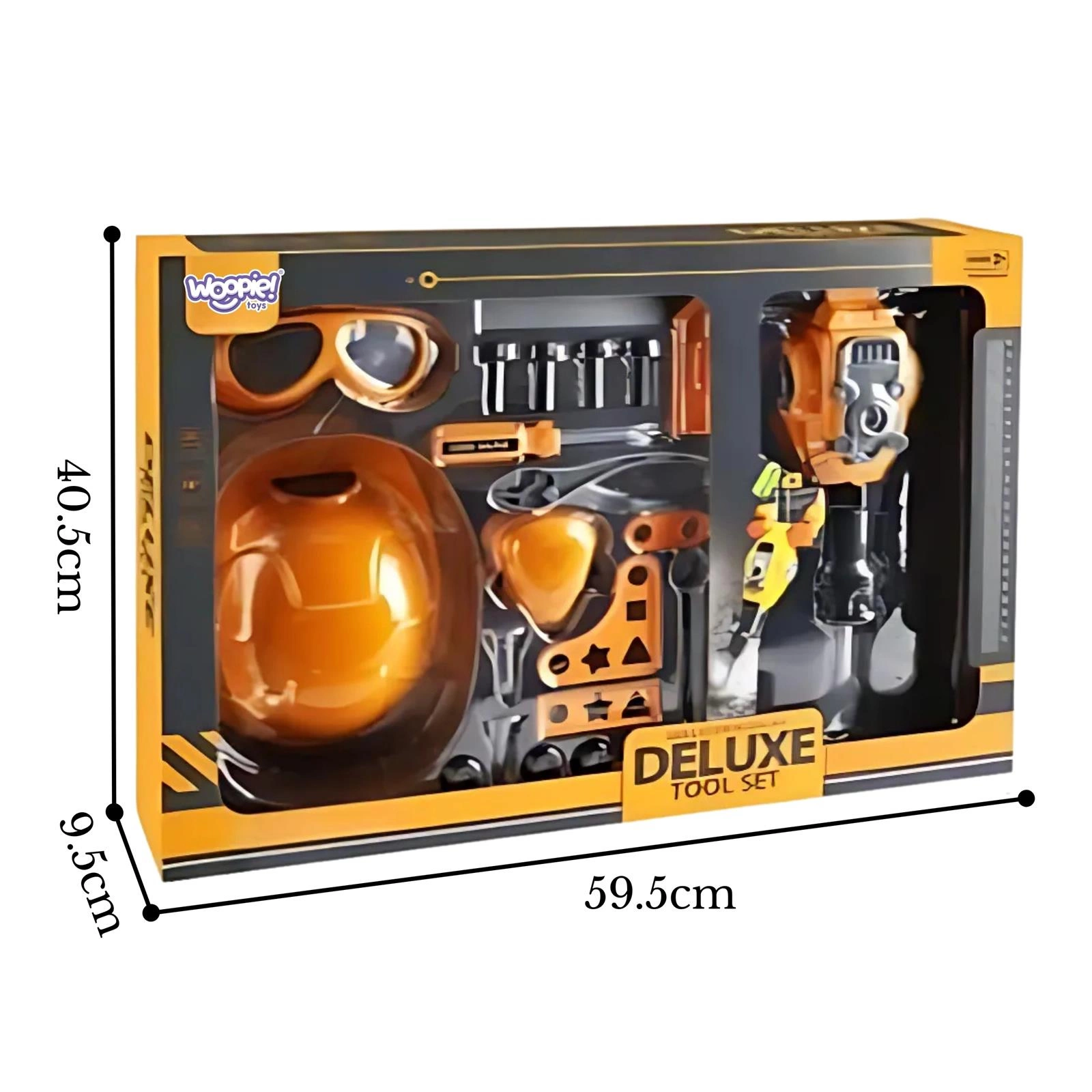 WOOPIE Zestaw Narzędzi Małego Majsterkowicza Gogle Kask Młot Pneumatyczny 21el.