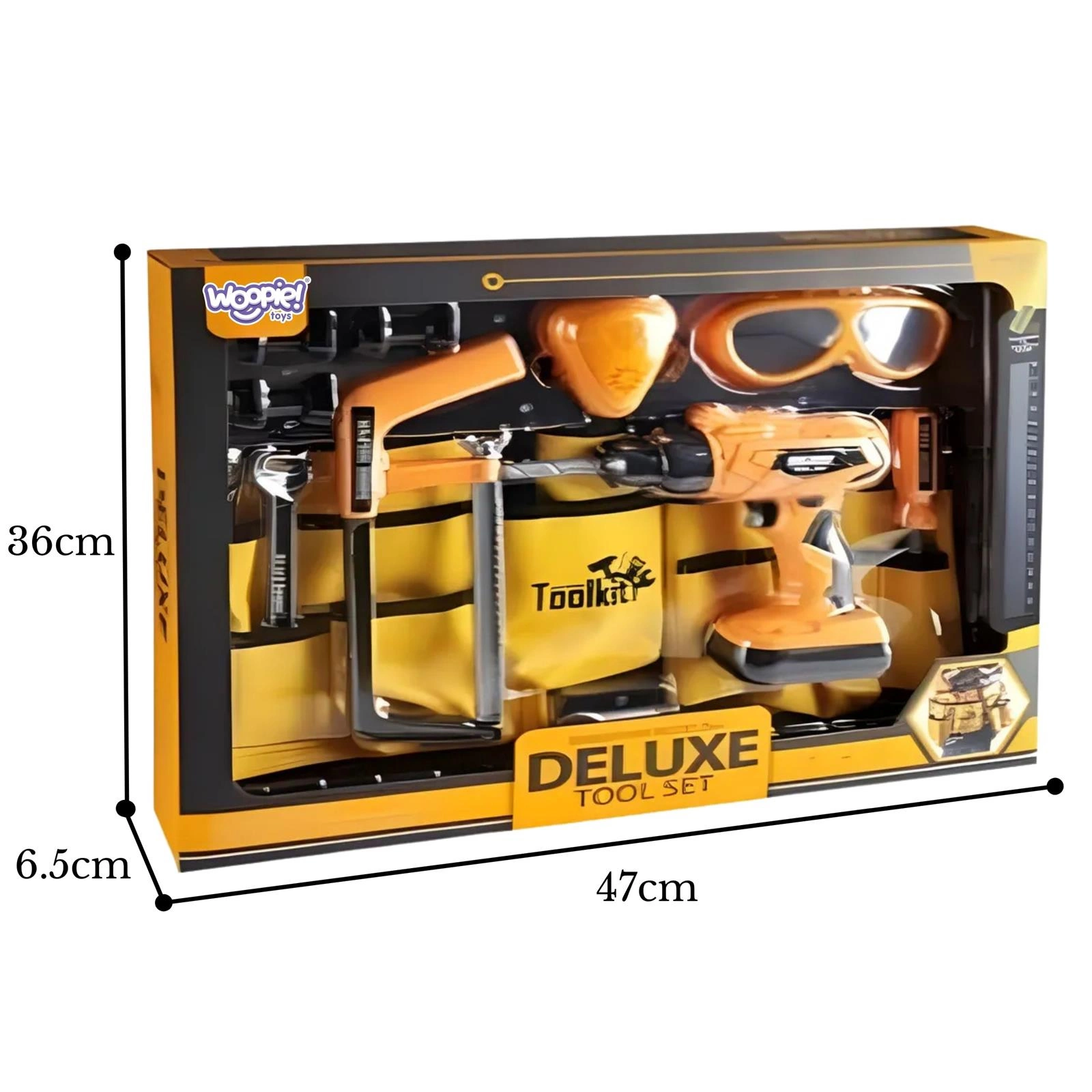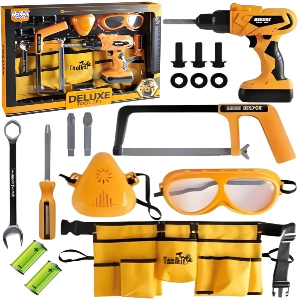 WOOPIE Zestaw Narzędzi Małego Majsterkowicza Gogle Wkrętarka Pas Na Narzędzia 16el.