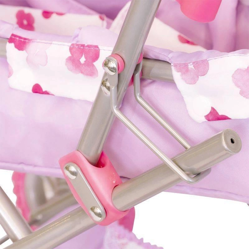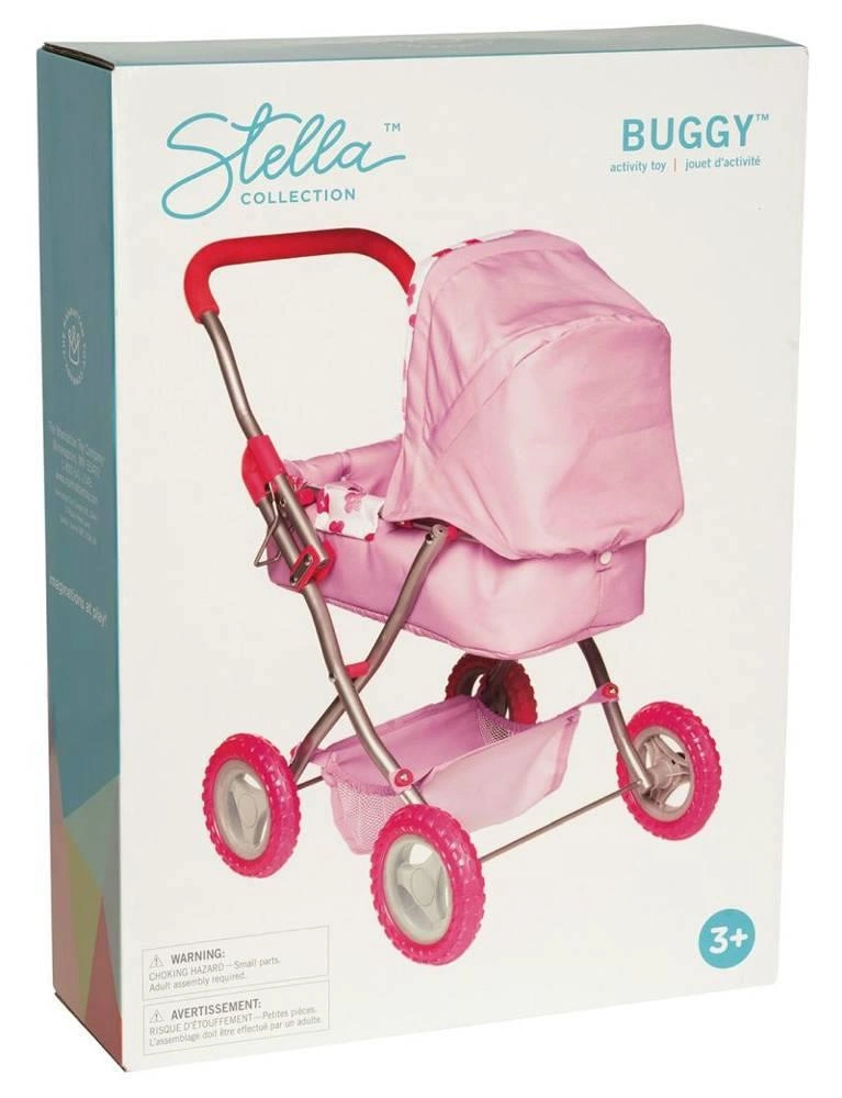 Wózek idealny na spacer z lalką. Posiada schowek na poziomie kółek do którego można zapakować dodatkowe gadżety, na przykład butelkę do karmienia. Wózek po złożeniu zajmuje niewiele miejsca, co ułatwia przechowywanie. Atrakcyjnym elementem wózka jest wyciągane nosidełko w którym można przenosić lalkę. Budka jest ruchoma, wózeczek jest doskonałym odwzorowaniem klasycznej spacerówki. Znakomicie ugości lalki z serii Baby Stella Manhattan Toy.