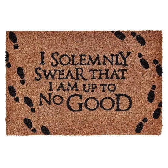 Ta stylowa wycieraczka o wymiarach 60 x 40 cm z napisem "Uroczyście Przysięgam, że Knuję Coś Niedobrego" to idealny dodatek dla każdego fana serii, który chce witać gości w magicznym stylu.