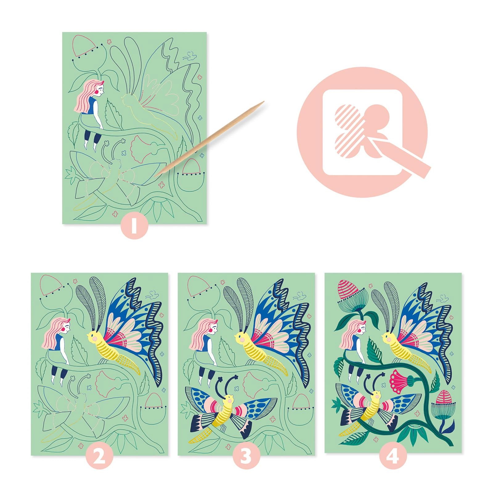 Załączonym rysikiem należy zdrapywać według instrukcji kolejne fragmenty ilustracji a otrzymamy 4 piękne obrazki. Zestaw zawiera: 4 obrazki do zdrapania, 1 patyczek do zdrapywania i książeczkę z podpowiedziami krok po kroku.