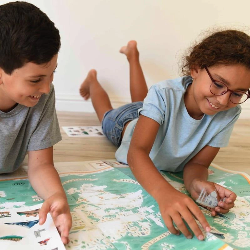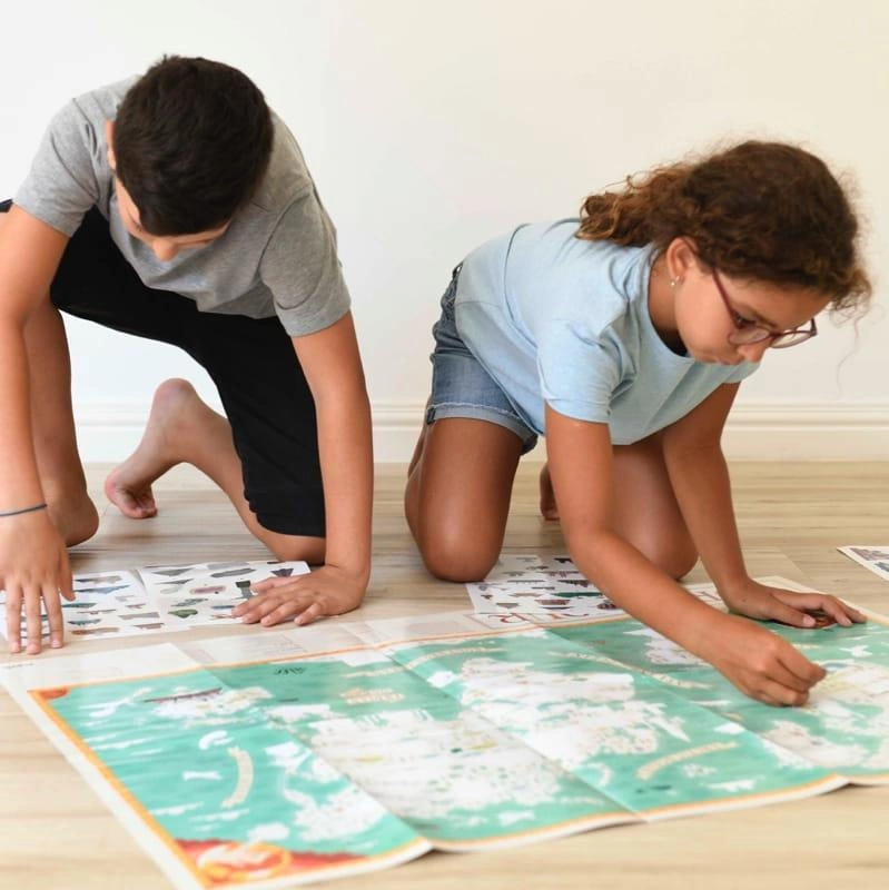 Plakat, który rozwinie ciekawość i wiedzę dzieci o świecie. Dzięki niemu dzieci odkryją najsłynniejsze zabytki świata i miejsca przyrodnicze na wszystkich kontynentach. Prawdziwa podróż do odkrywania cudów, które nas otaczają. Dziecko nakleja na plakacie 71 dużych naklejek, zgodnie ze wskazanymi numerami.
