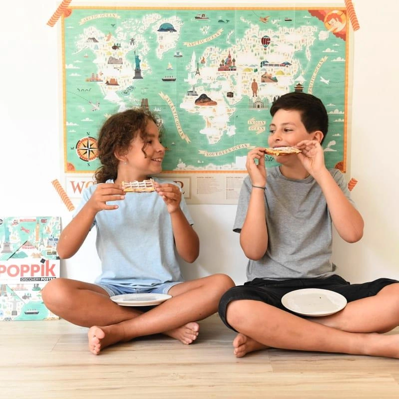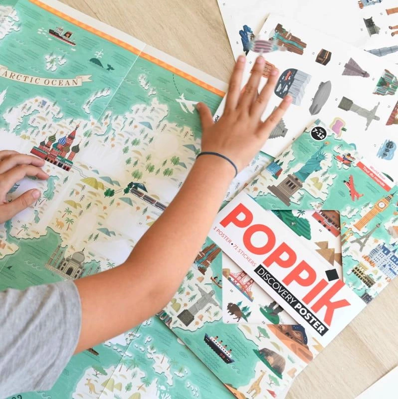Na plakacie przedstawiono kilkadziesiąt najsłynniejszych zabytków świata, ale także kilka niezwykłych miejsc przyrodniczych. Dzięki tym naklejkom i temu plakatowi dzieci