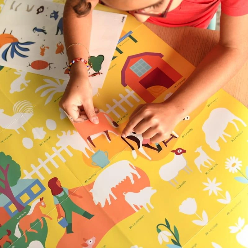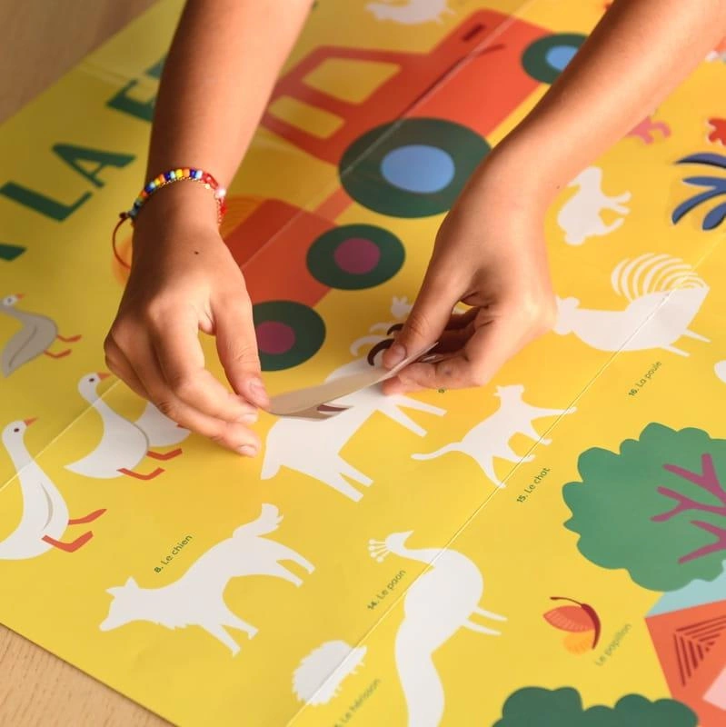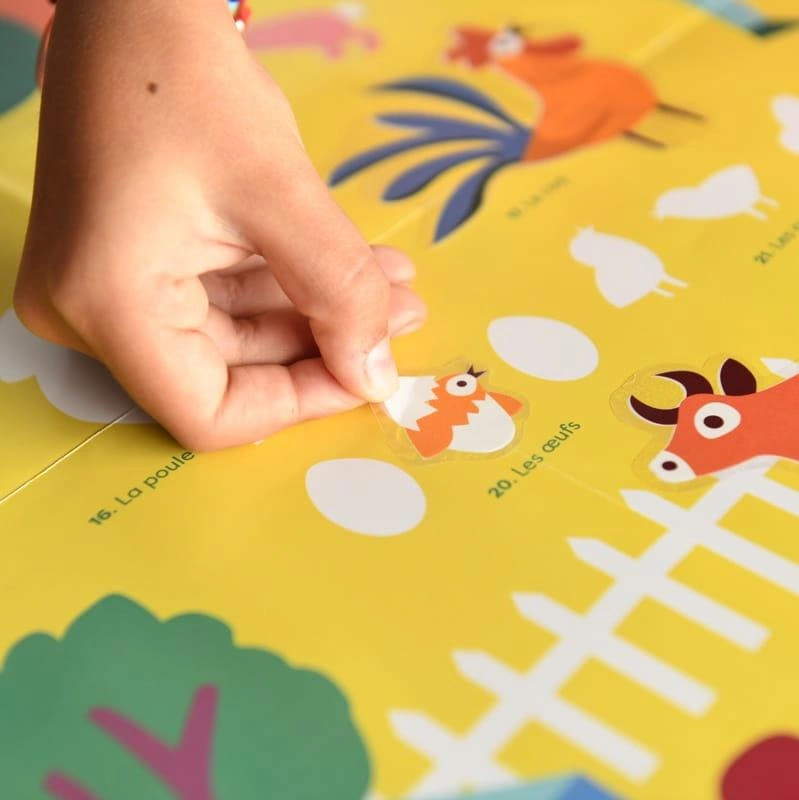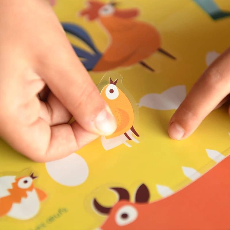 pomyłki). Dziecko przykleja na plakacie prawie 58 dużych naklejek, zgodnie z
